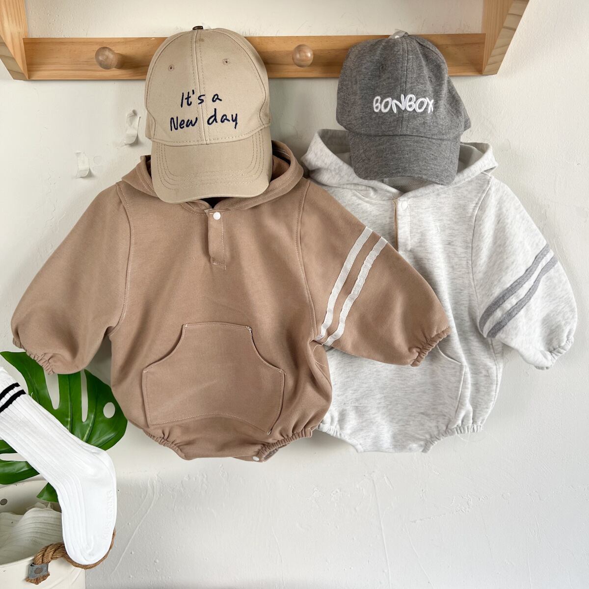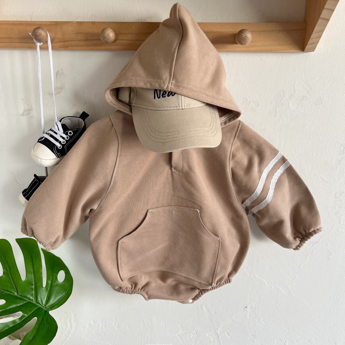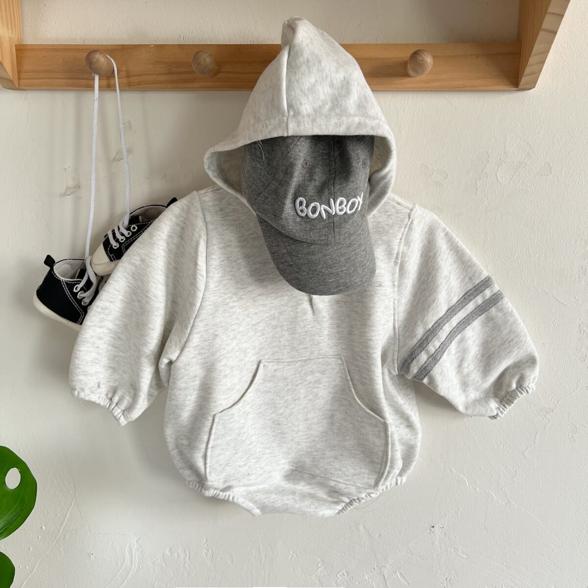 【BABY】帽子付きフーディロンパース