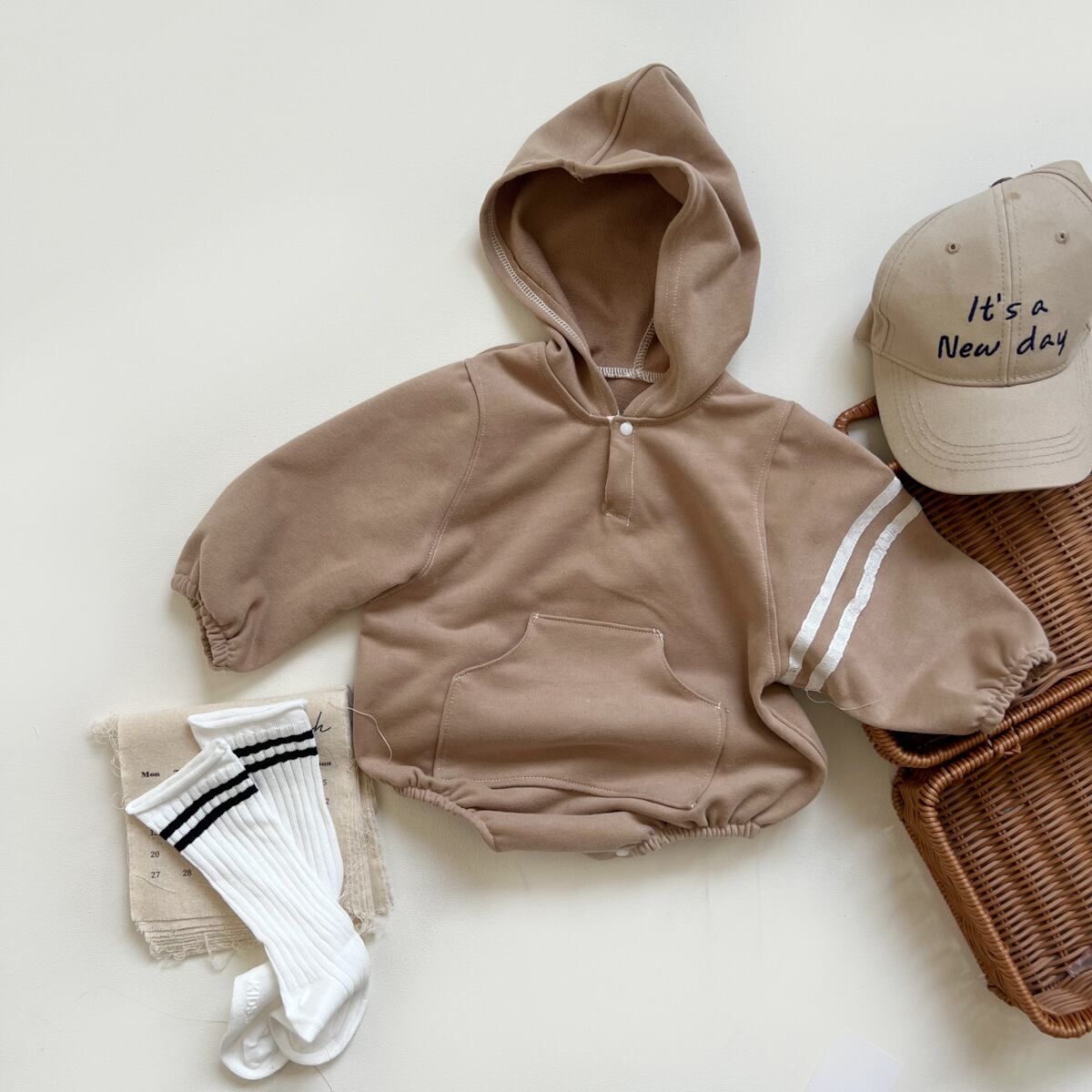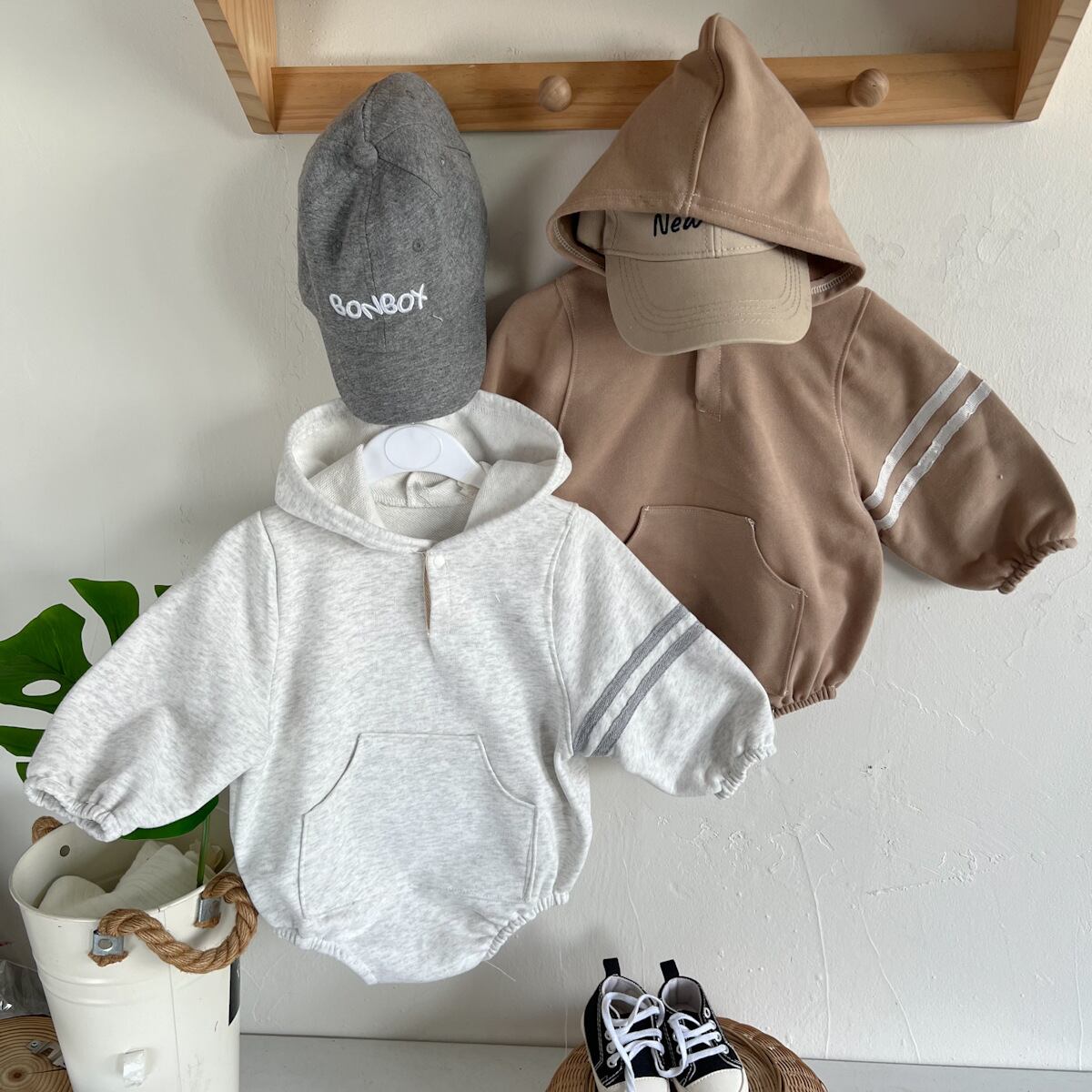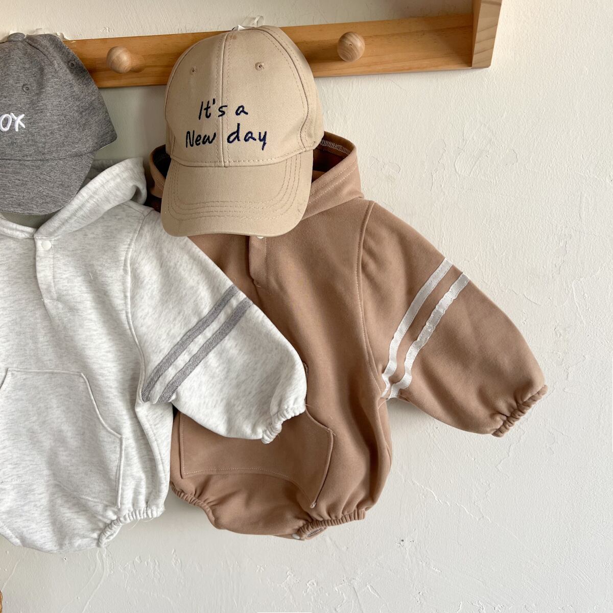 【BABY】帽子付きフーディロンパース