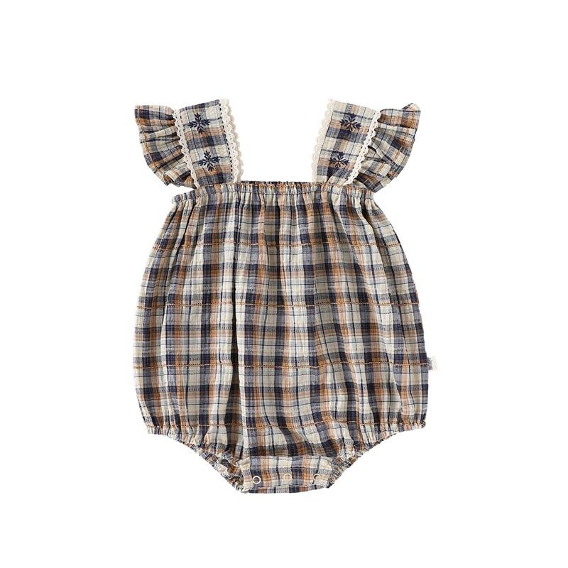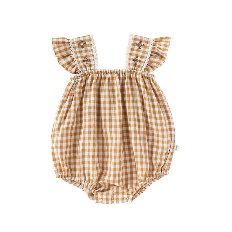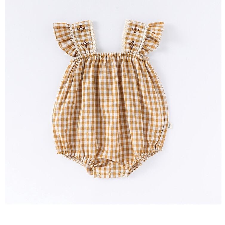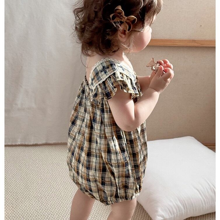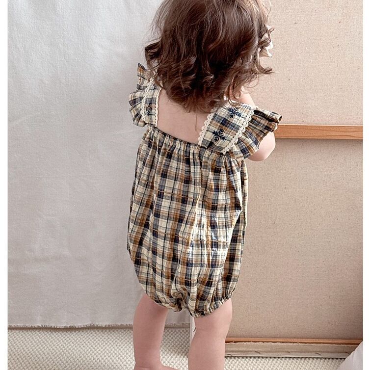 【BABY】北欧風 フリルチェックロンパース