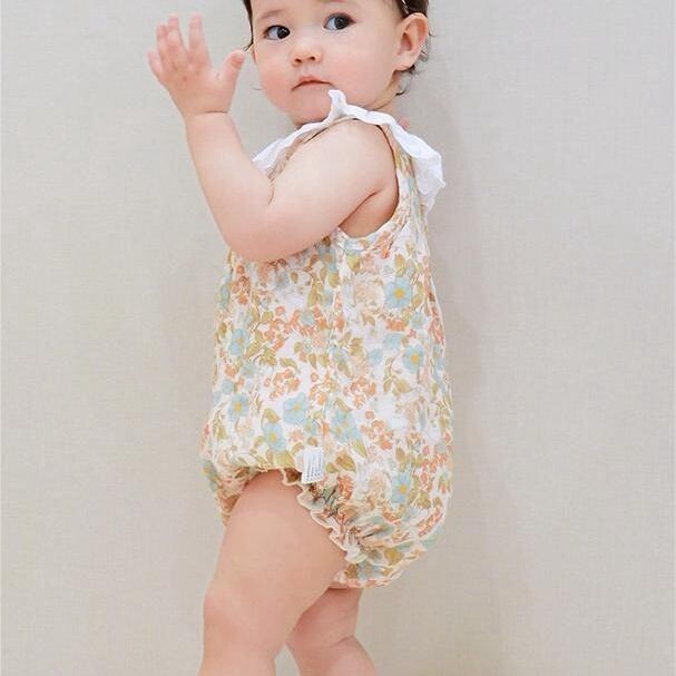 【BABY】ノースリーブ花柄ロンパース