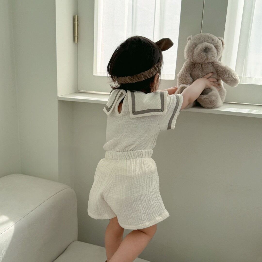 【BABY&KID】韓国風 セーラー半袖セットアップ