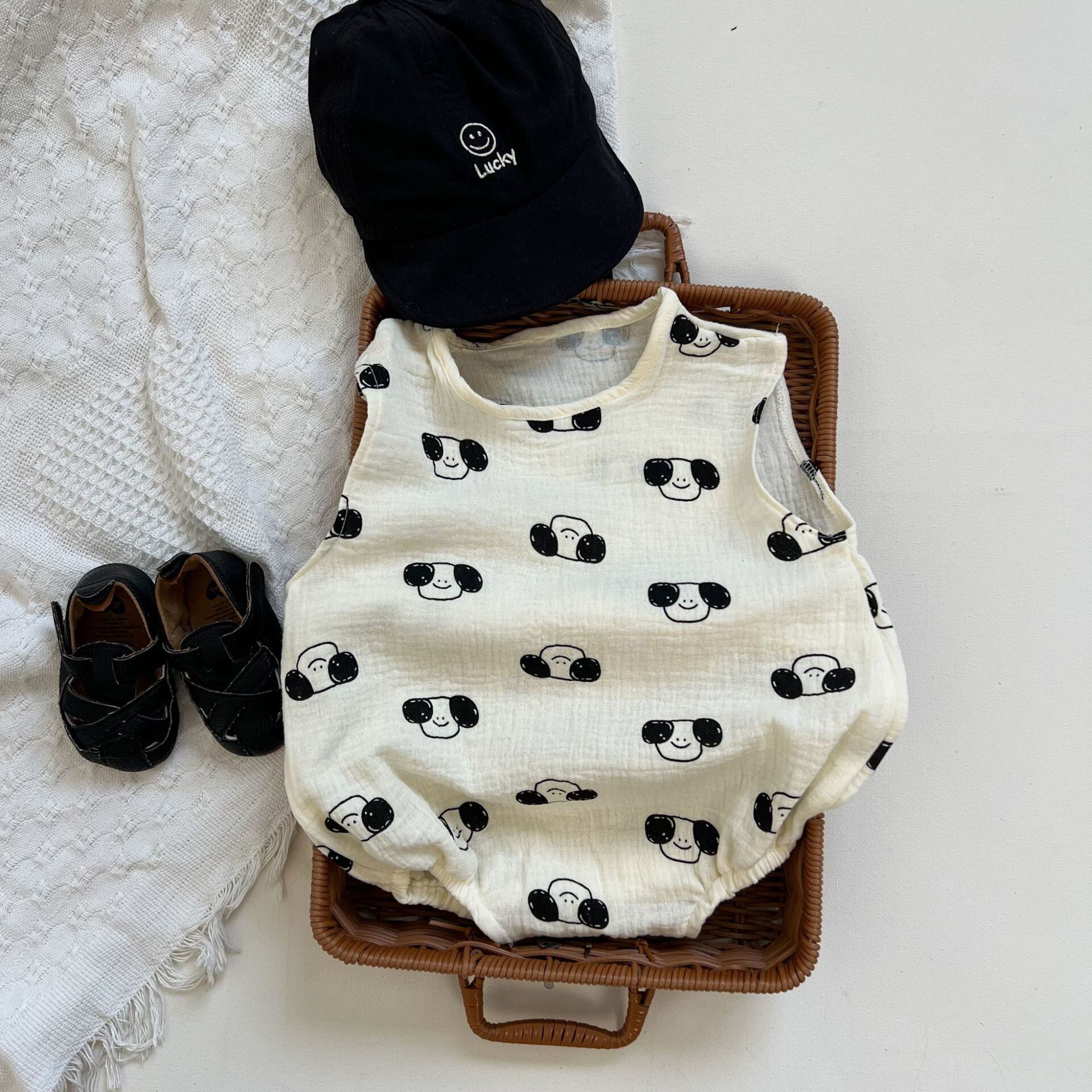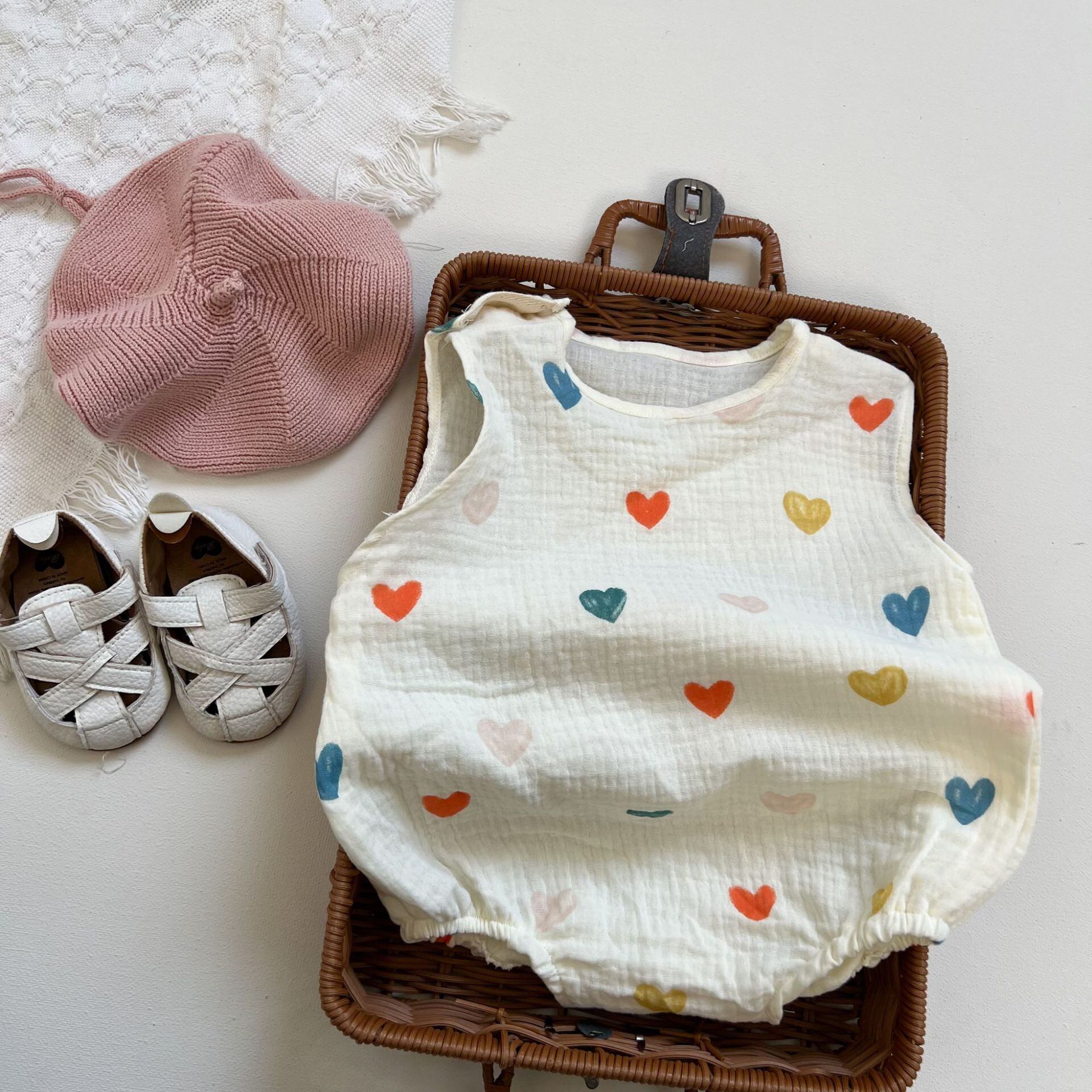 【BABY】ドッグ・ハート柄ノースリーブロンパース
