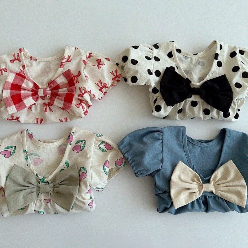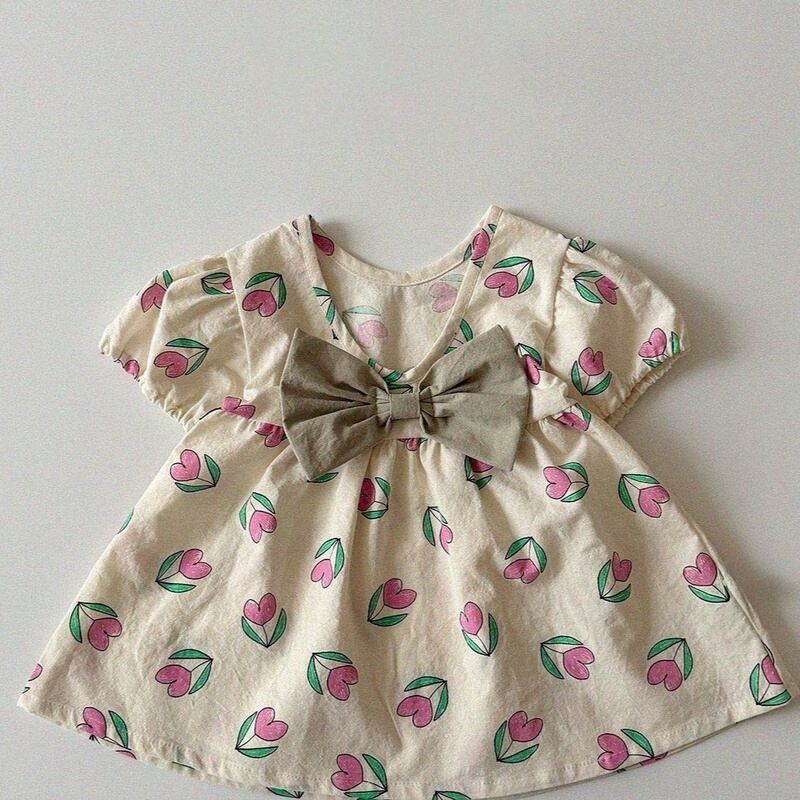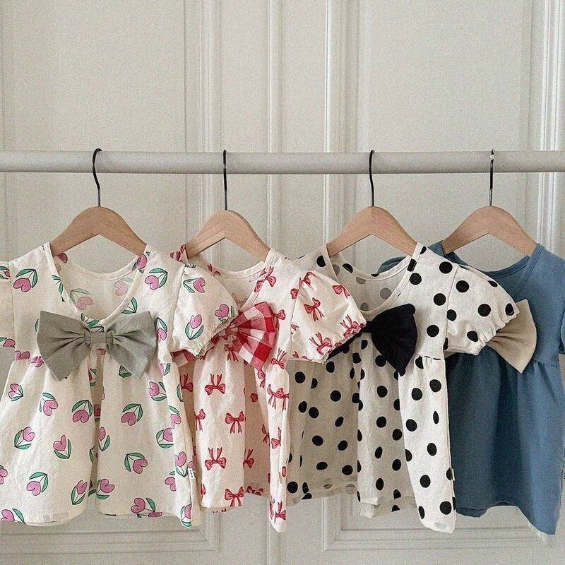 【BABY&KID】韓国風 蝶結び半袖ワンピース