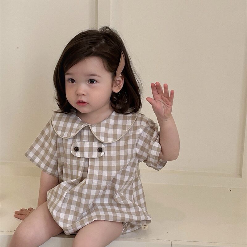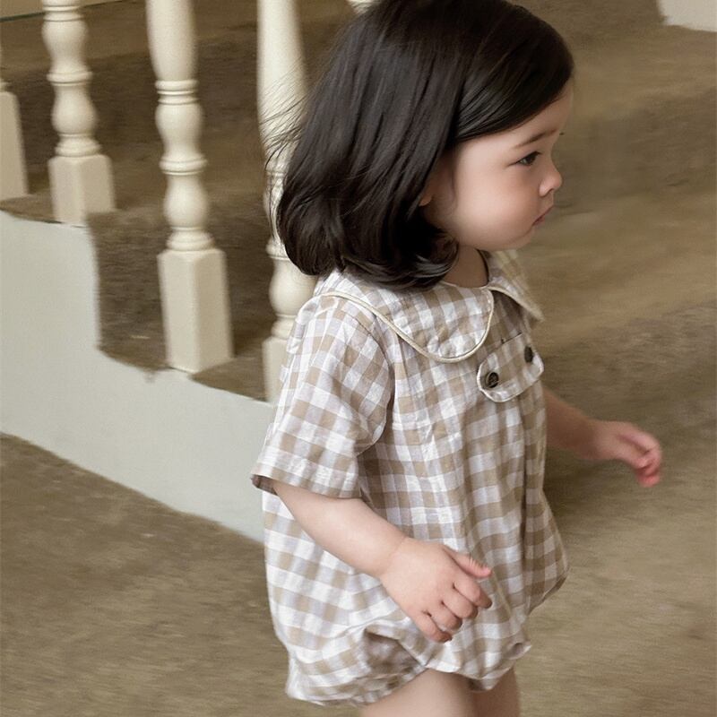 【BABY】夏新作 チェック柄、ドット柄ロンパース