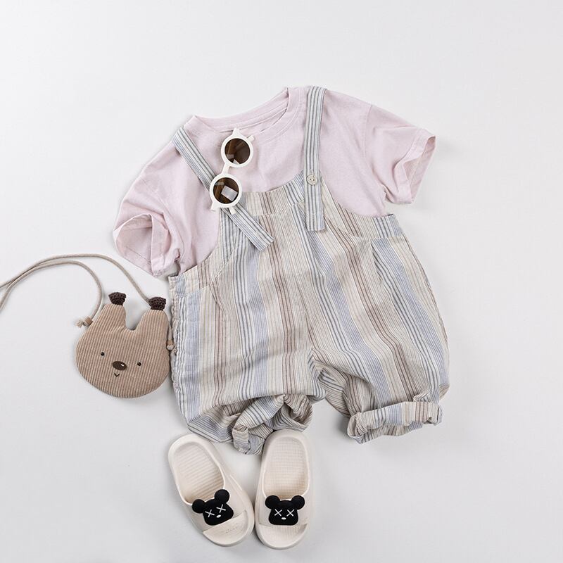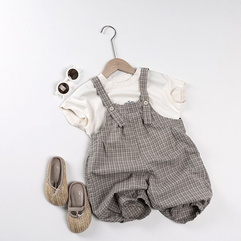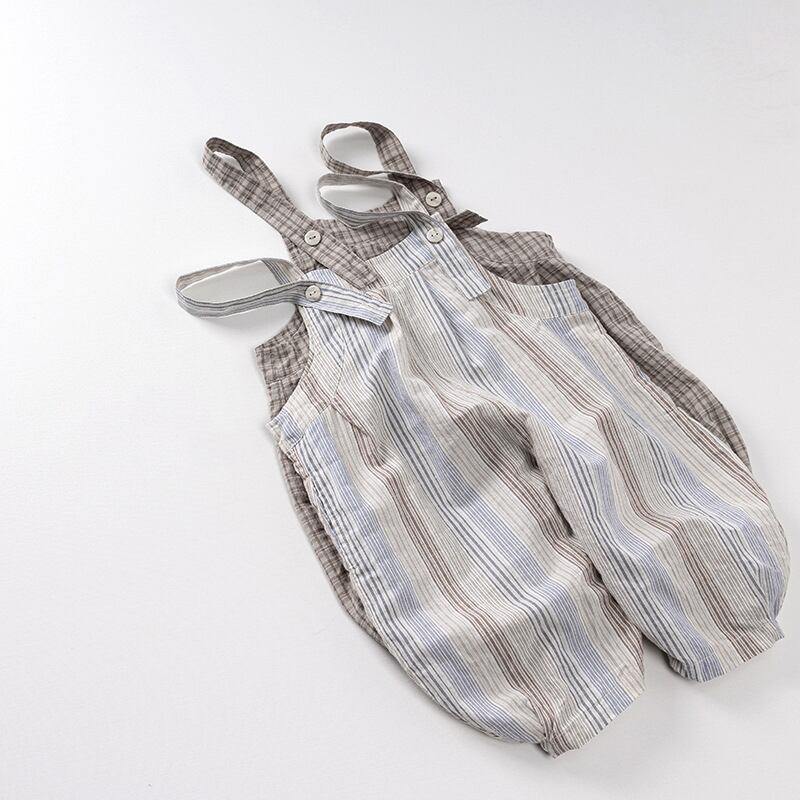 【BABY&KID】韓国風 チェック柄、ストライプサロペット
