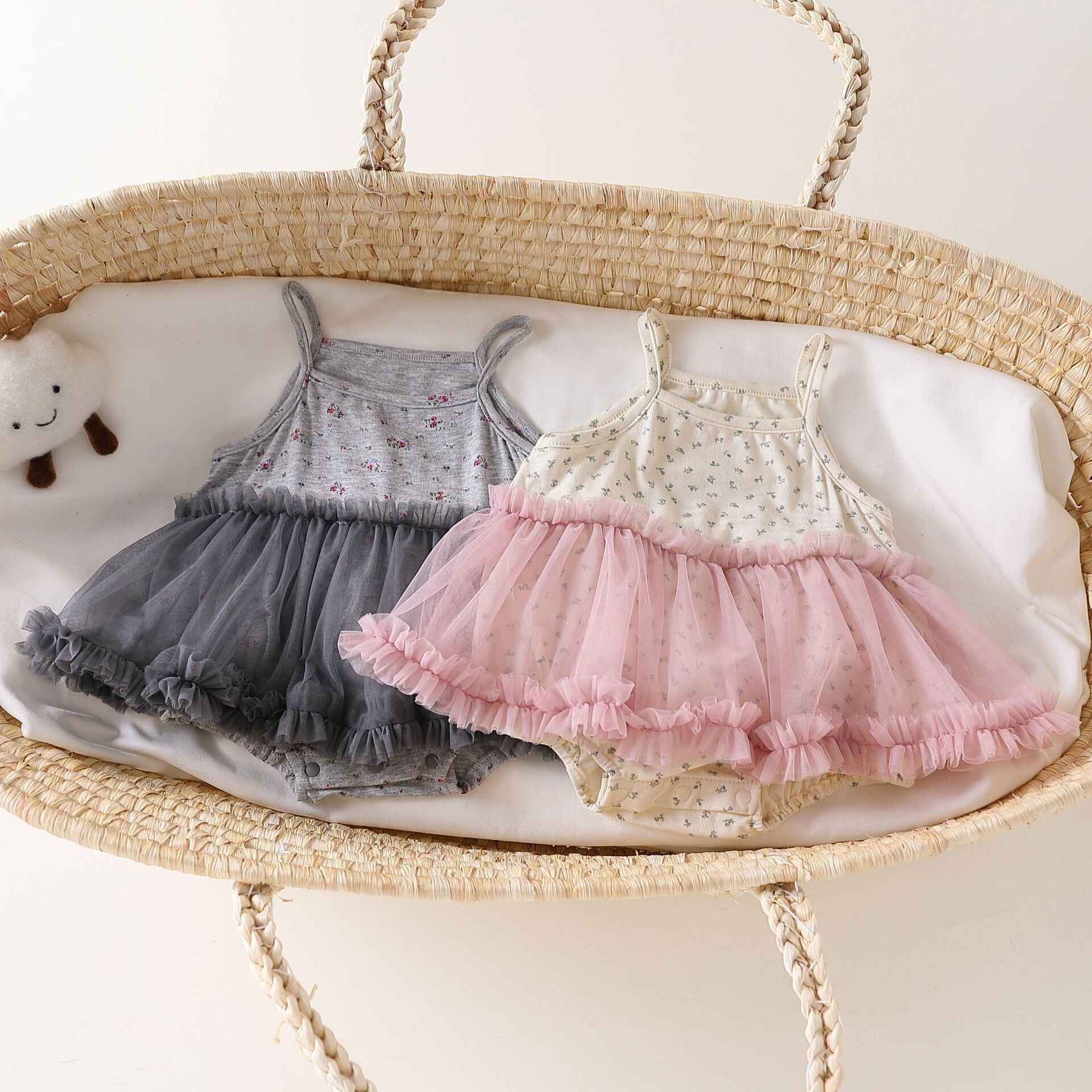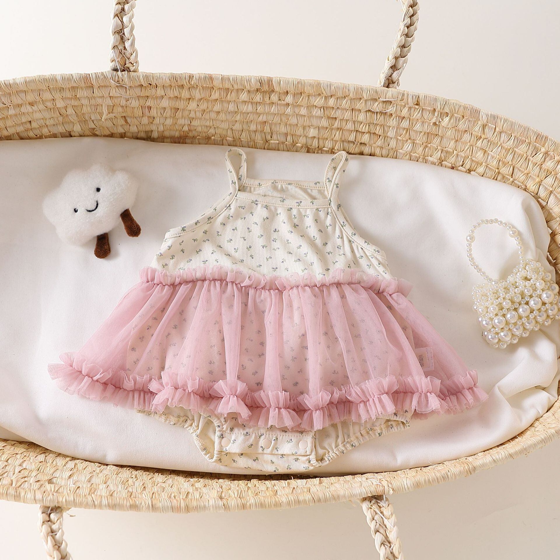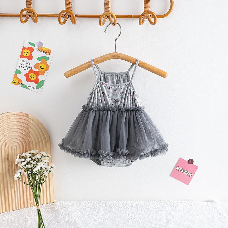 【BABY】韓国風 花柄レースロンパース
