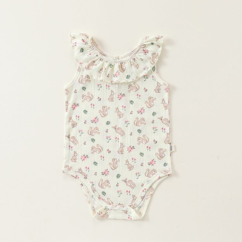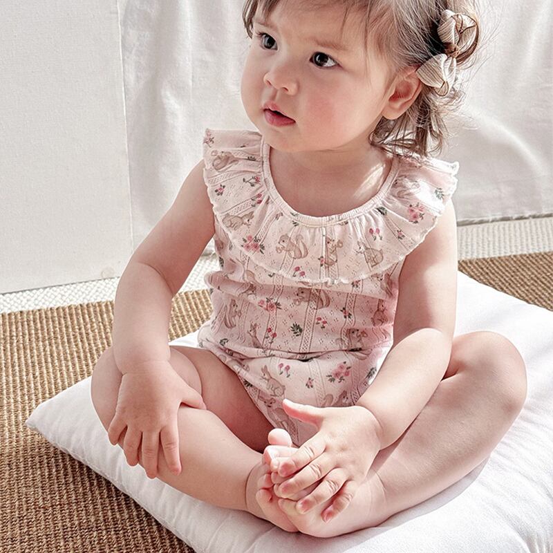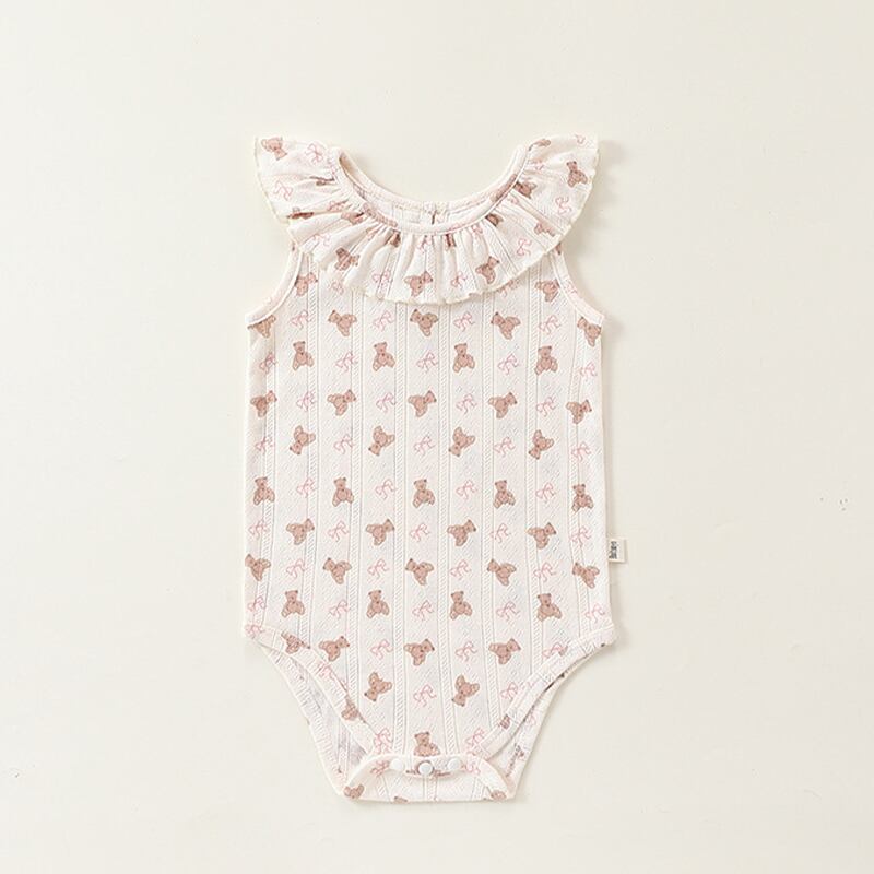 【BABY】夏新作 フリル襟ノースリーブロンパース