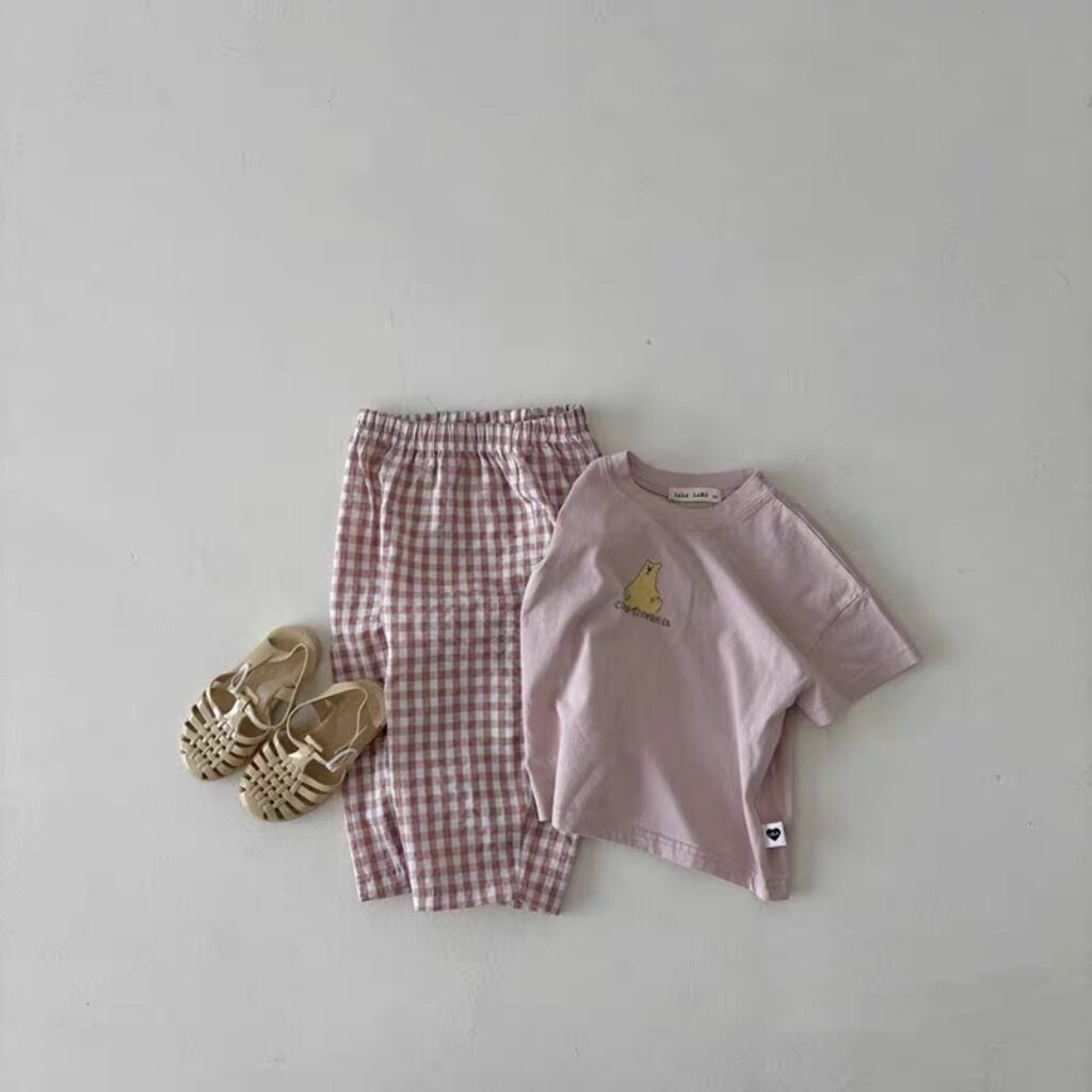 【BABY&KID】韓国風 チェック柄ロングパンツ