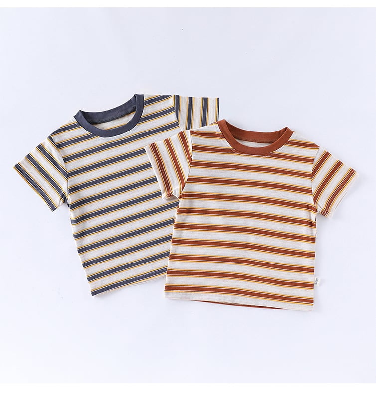 【BABY&KID】欧米風 ボーダー柄半袖シャツ