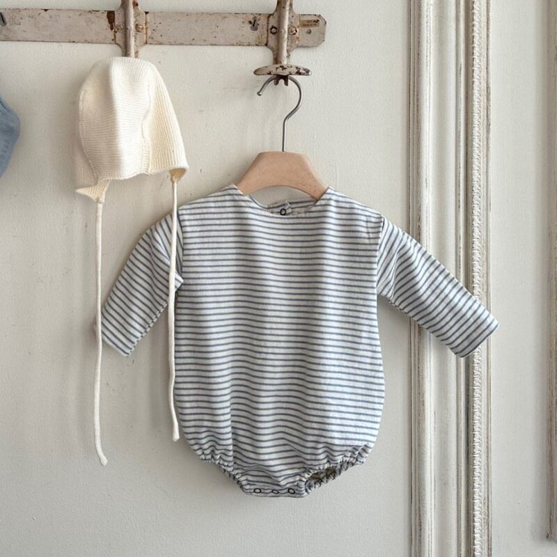 【BABY】韓国風 ボーダー柄ロンパース