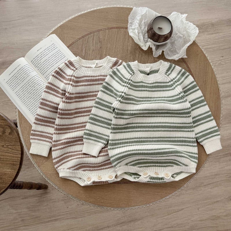 【BABY】ボーダー柄セーターロンパース