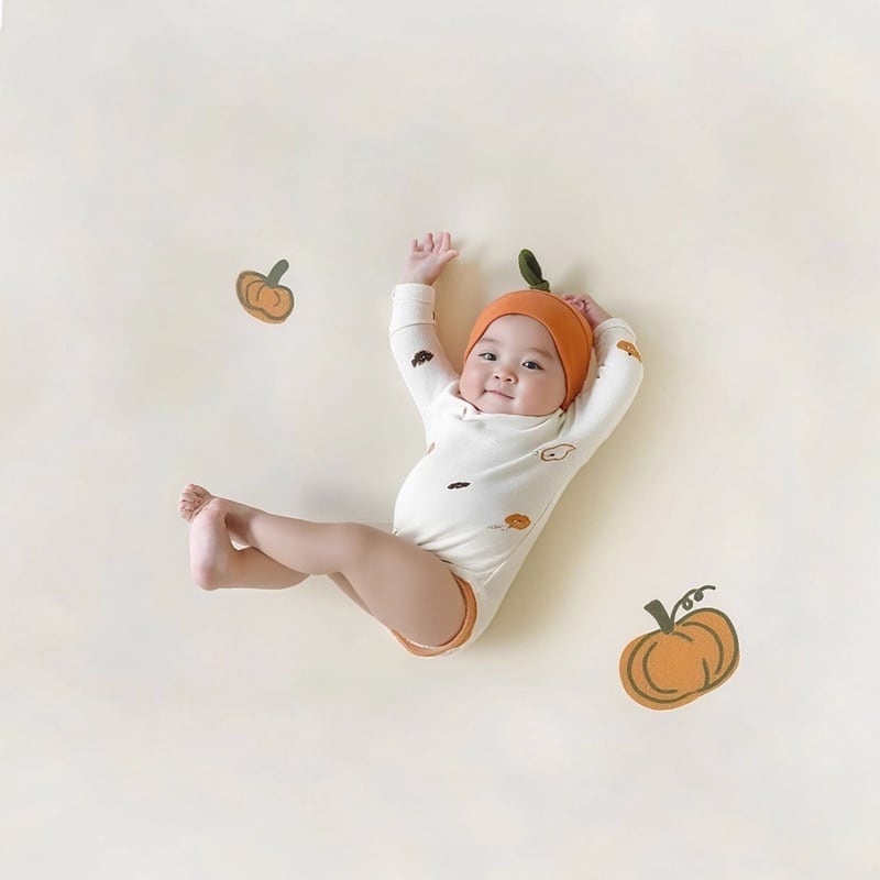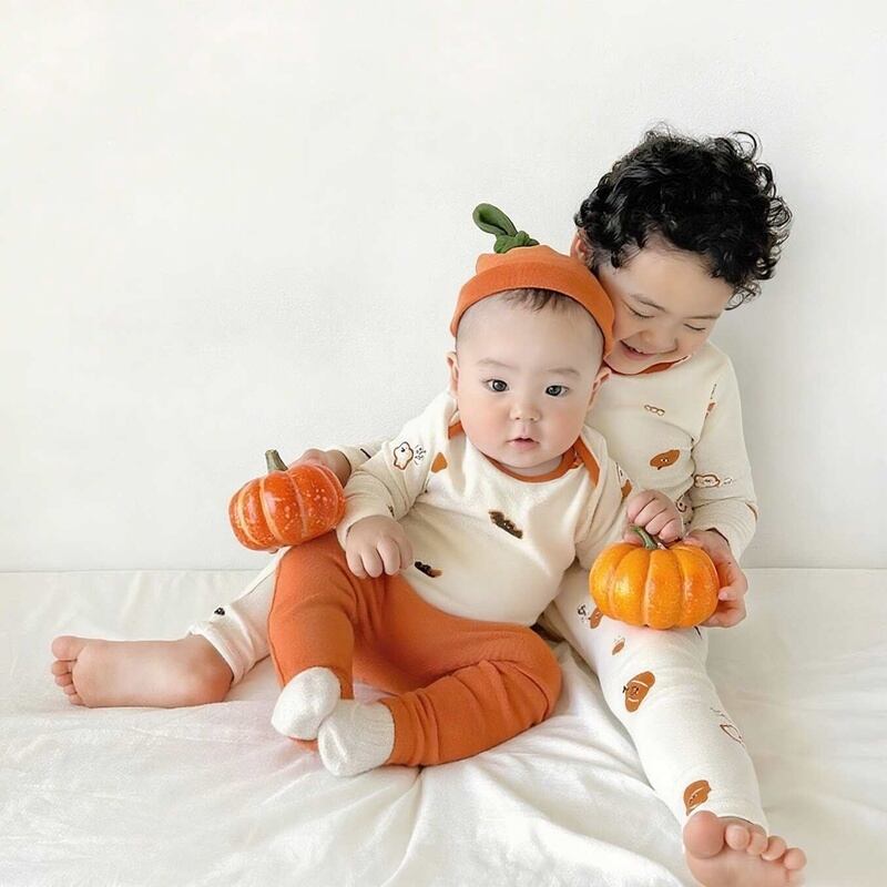 【BABY】韓国風 かぼちゃロンパース、セットアップ