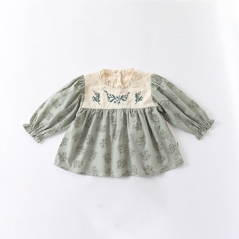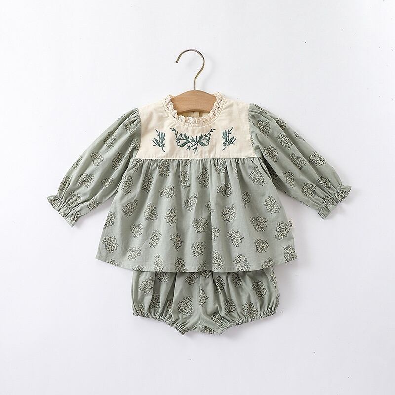 【BABY&KID】グリーン花柄ロンパース、トップス