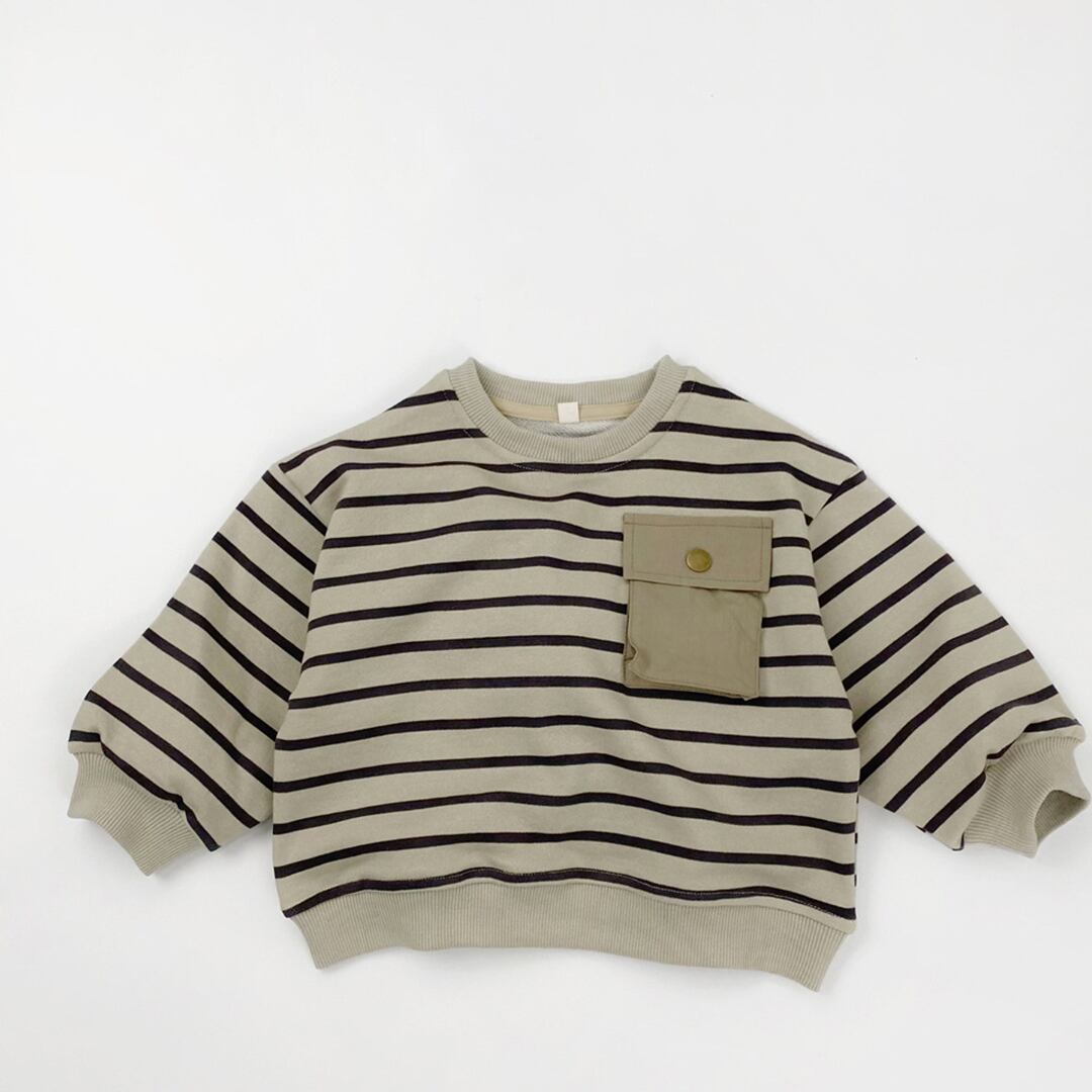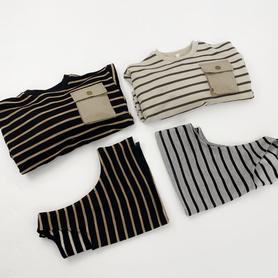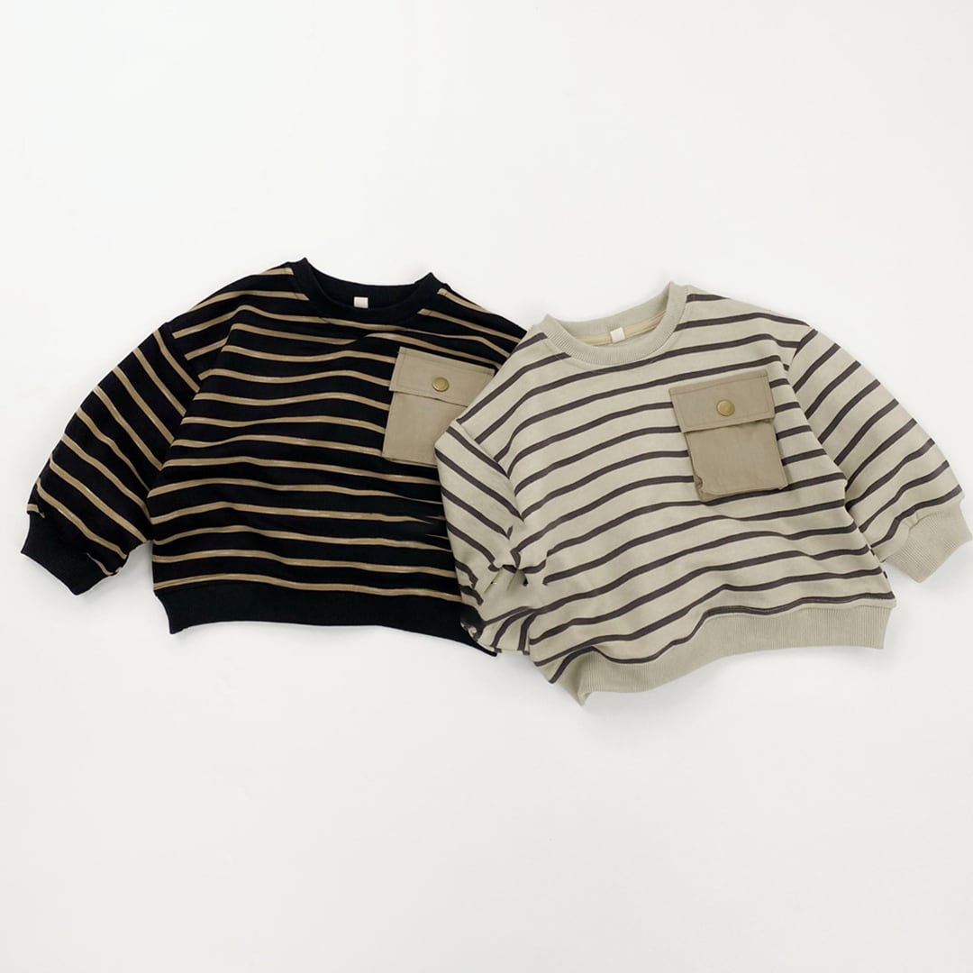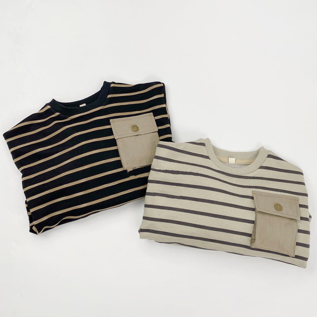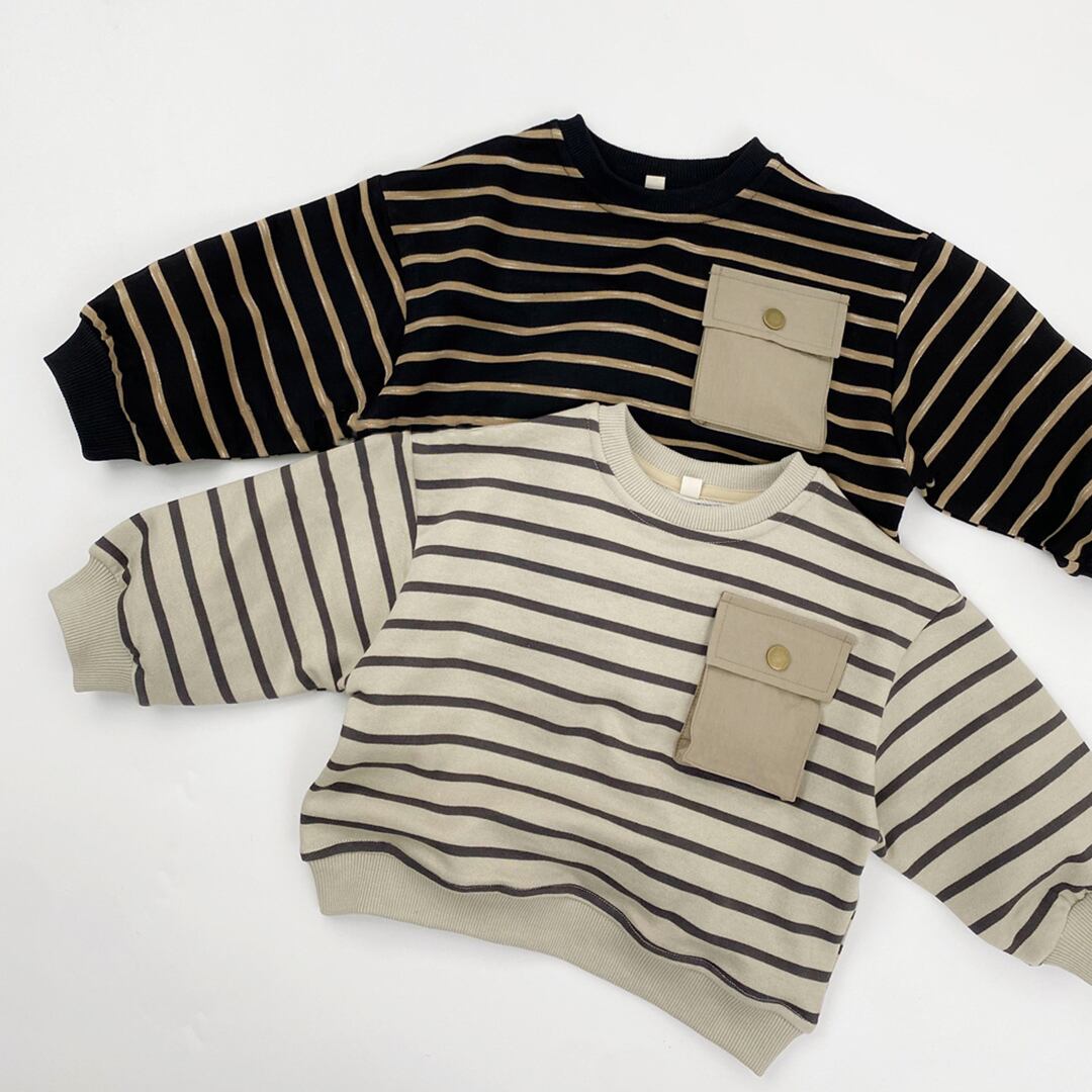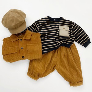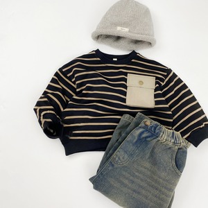 【BABY&KID】韓国風 ボーダー柄ポケット付きシャツ