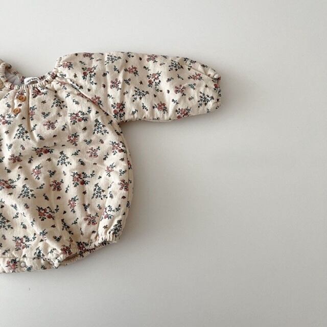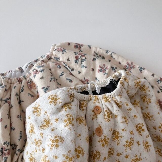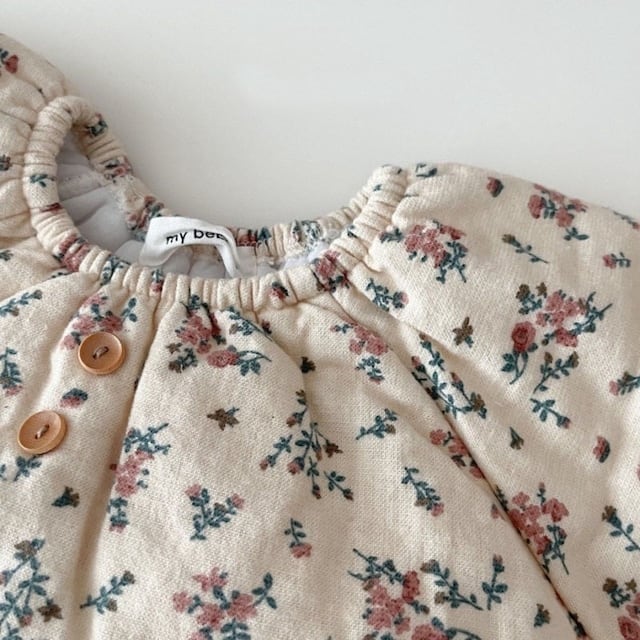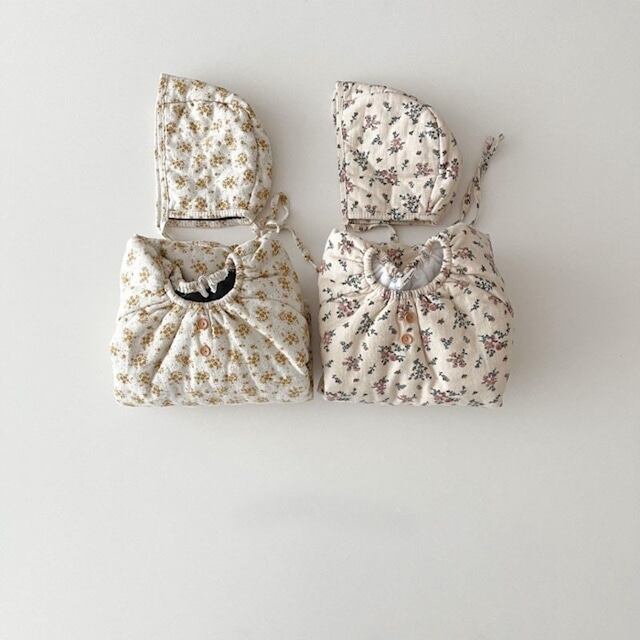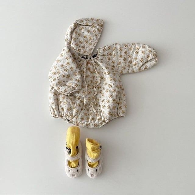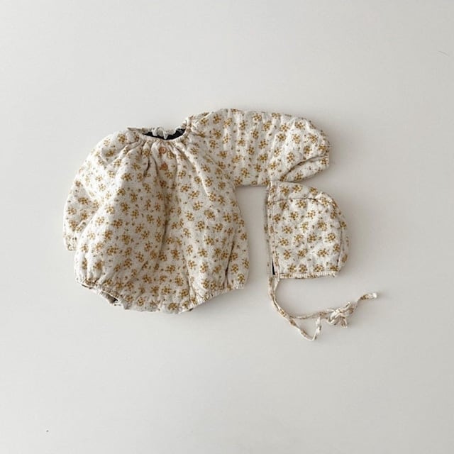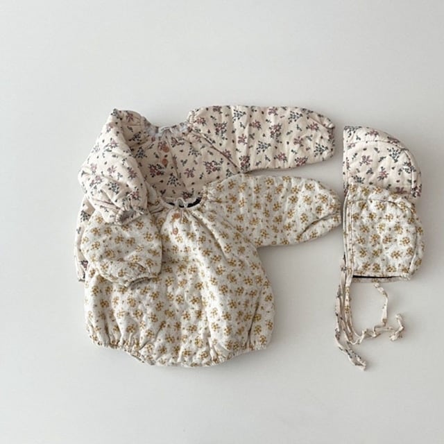 【BABY】韓国風厚手防寒フラワーロンパース&帽子