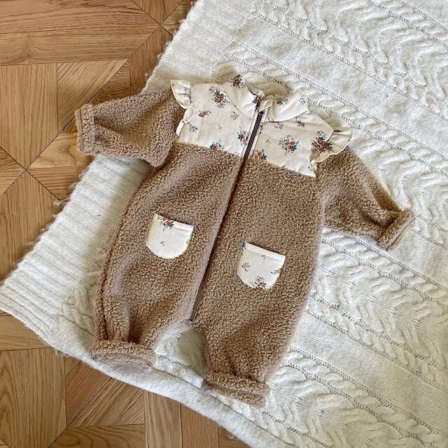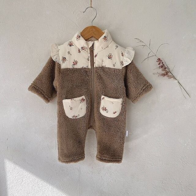 【BABY】もこもこフラワー襟ロンパース