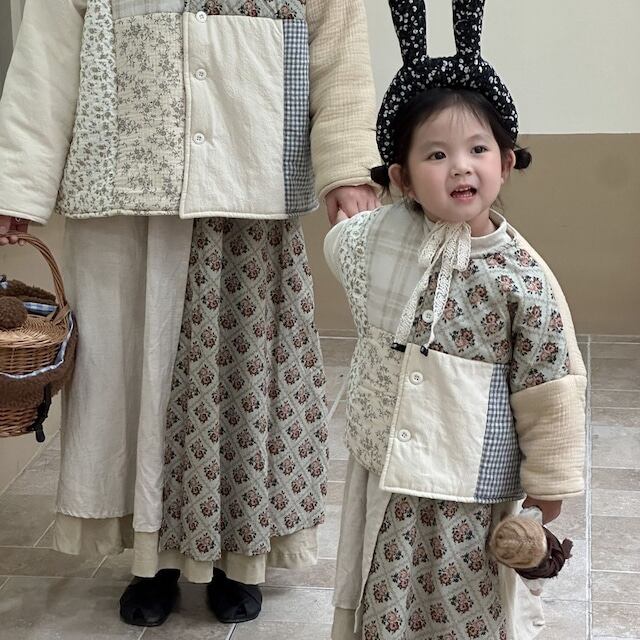 【親子】ステッチオシャレ暖かいアウター、スカート