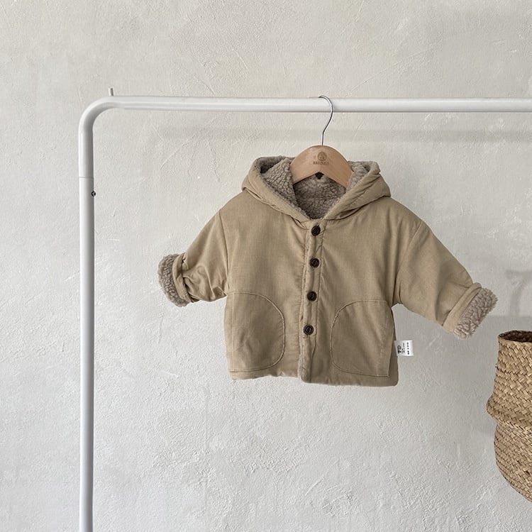 【BABY】韓国風 厚手暖かいイ帽子付きコート