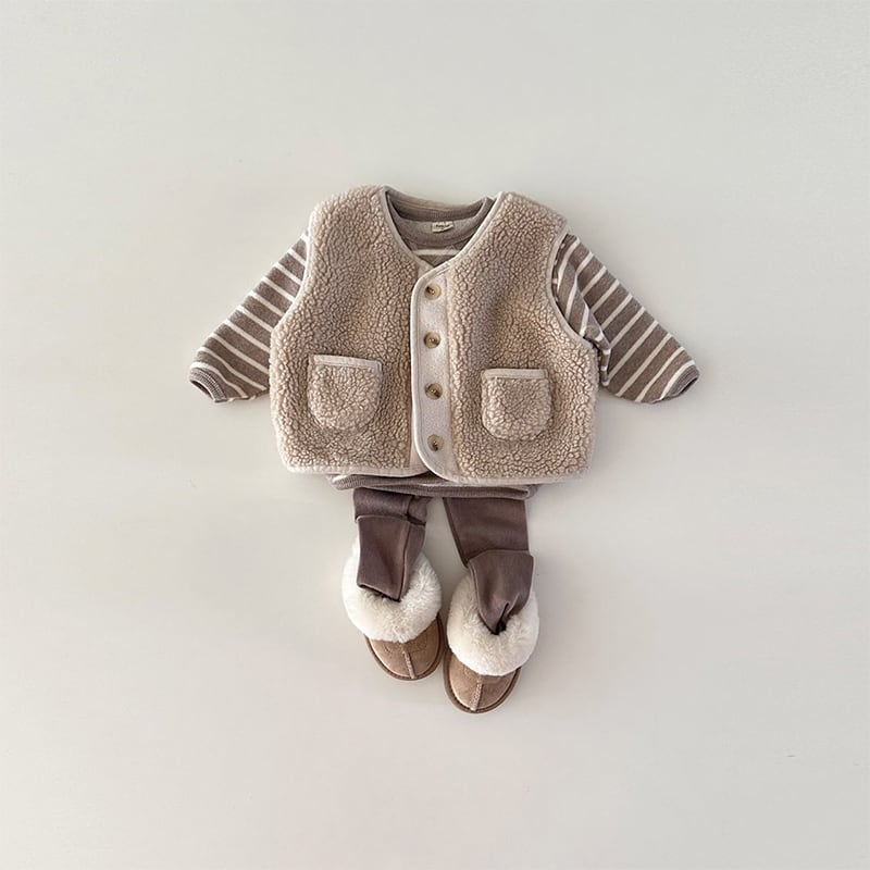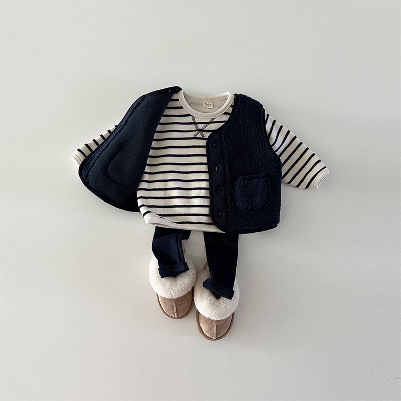 【BABY&KID】ボーダー柄トレーナー、厚手ベスト