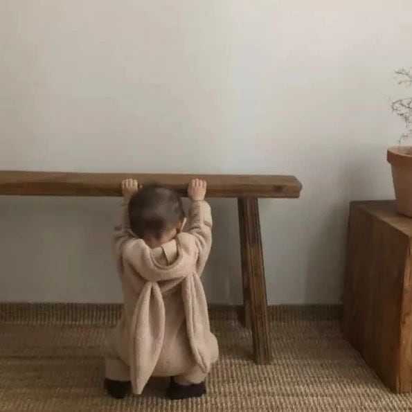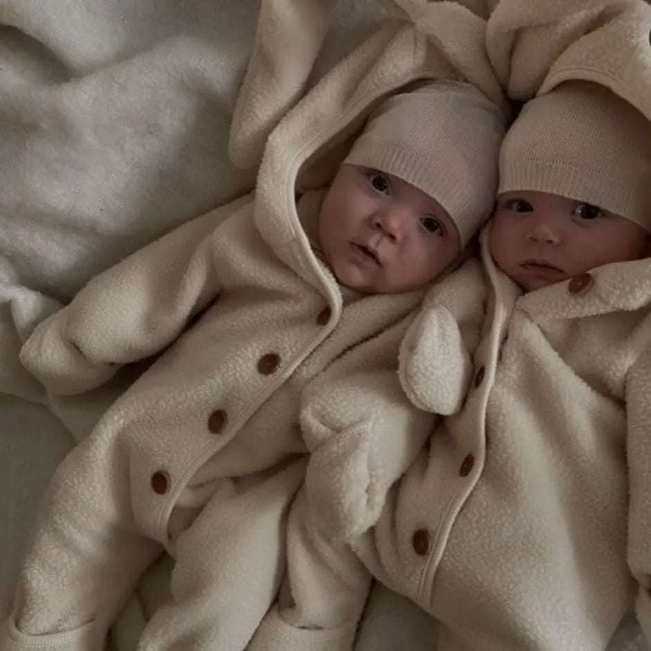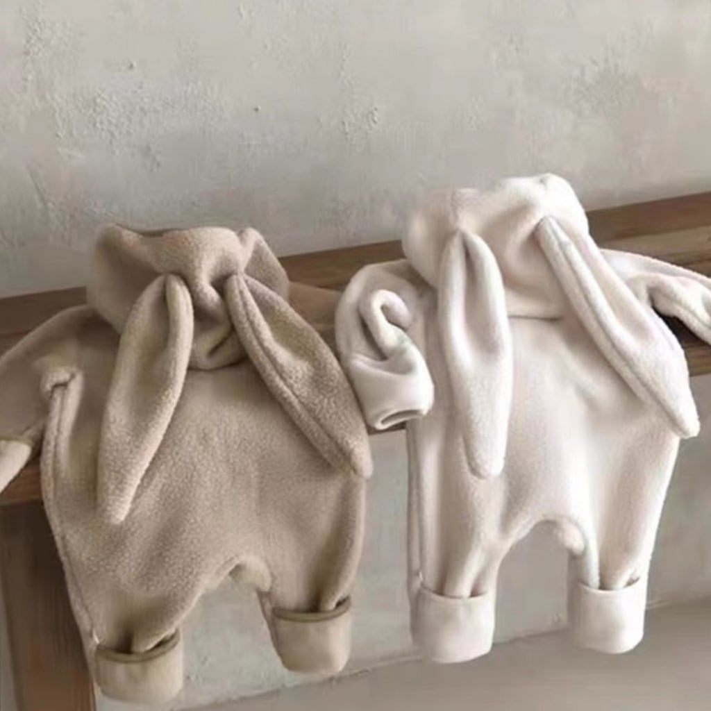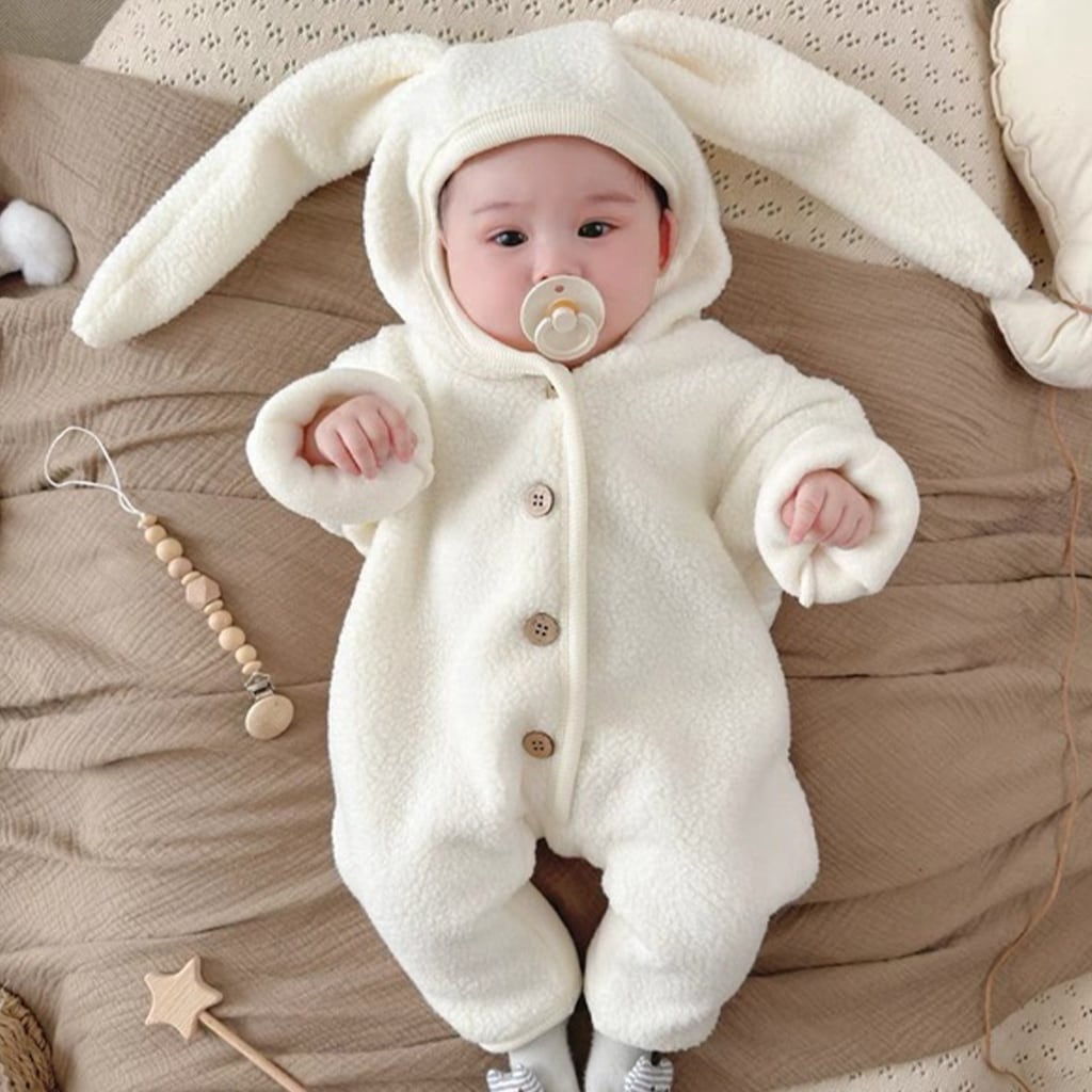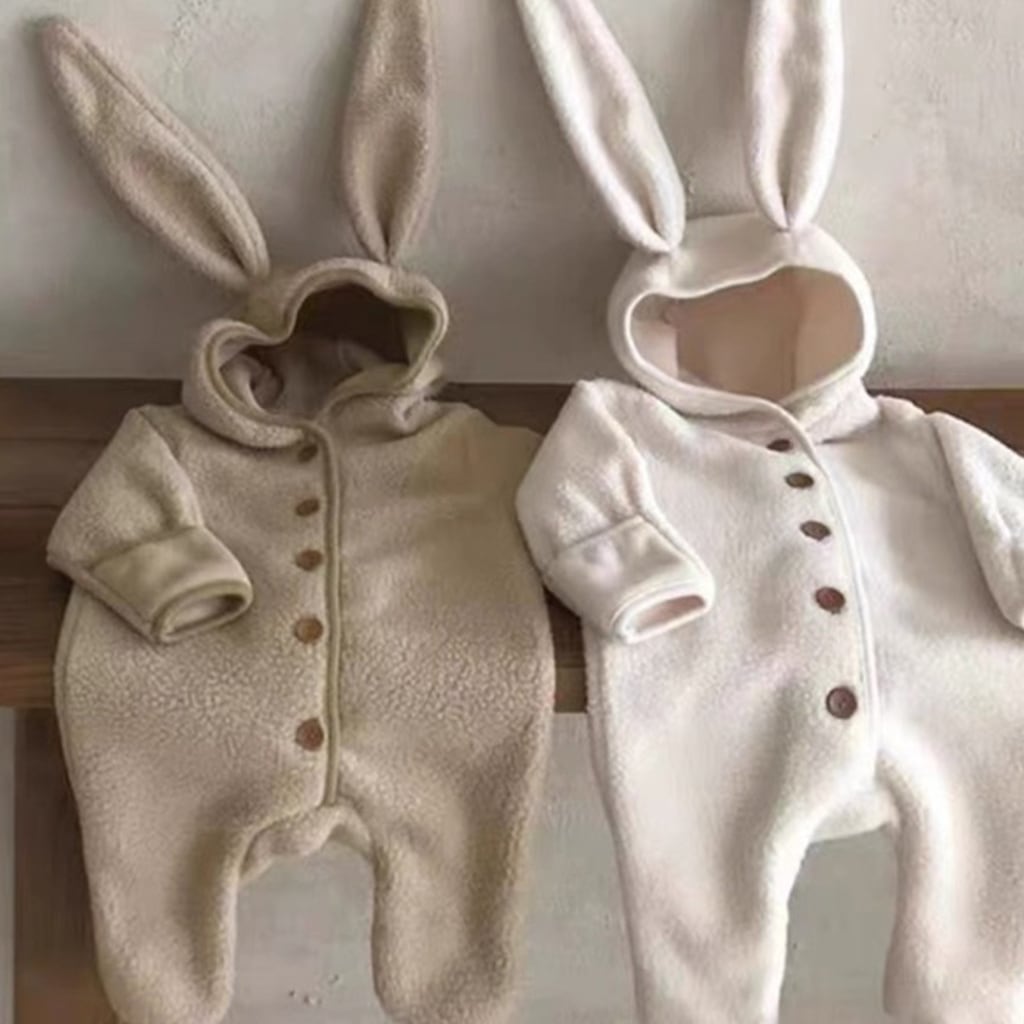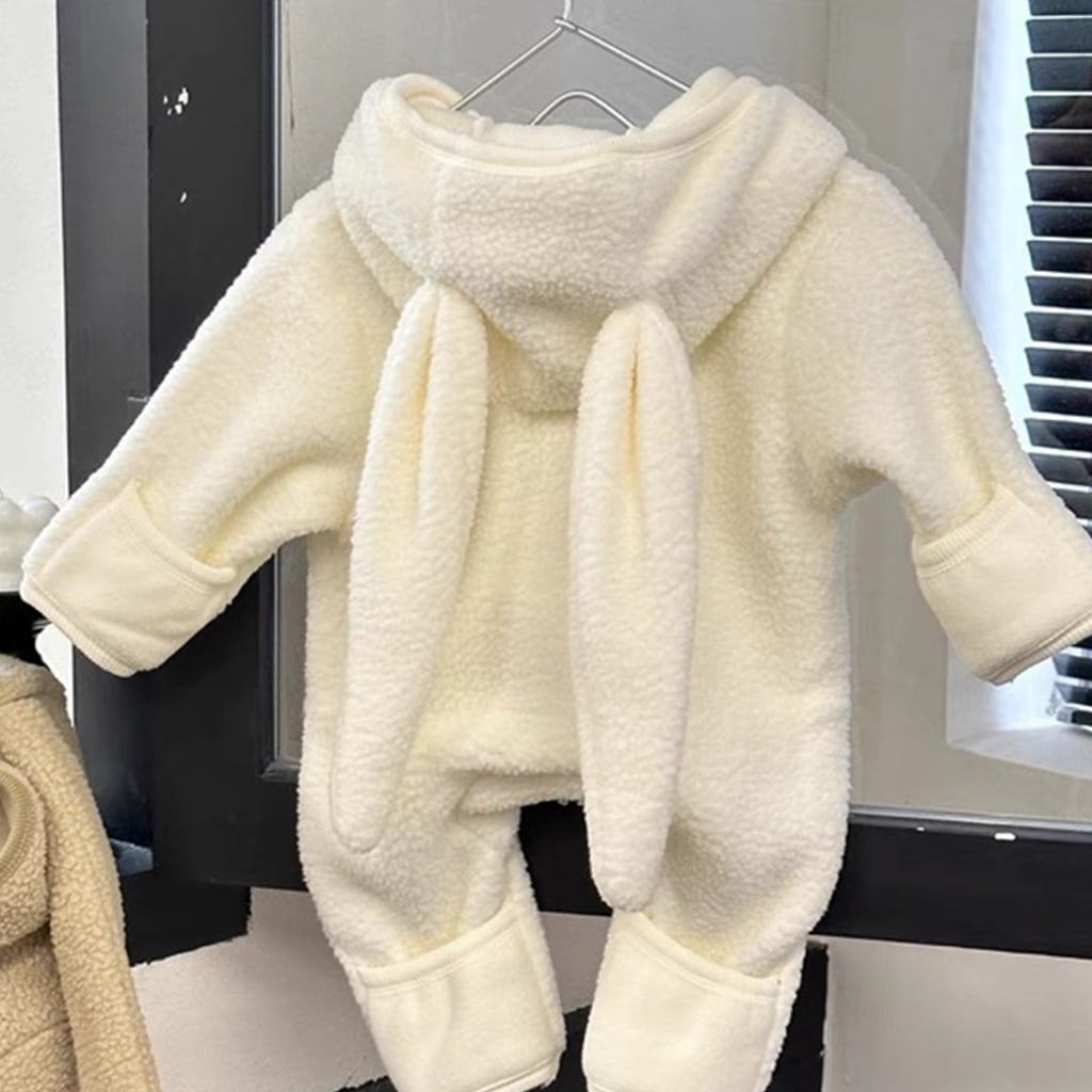 【BABY】もこもこウサギ帽子付きロンパース