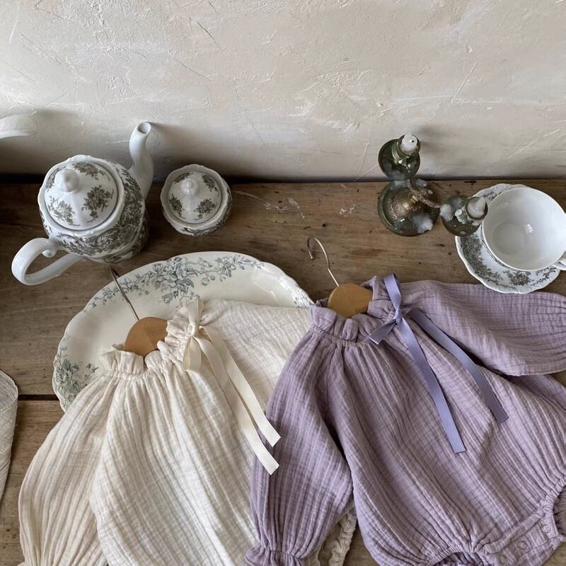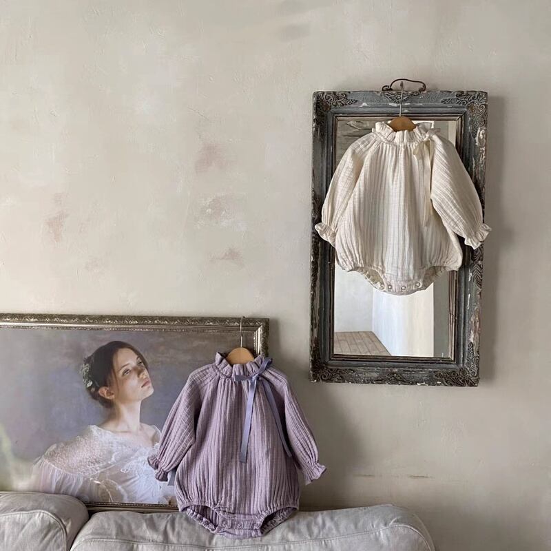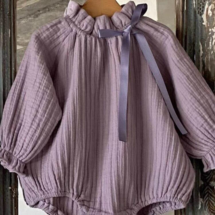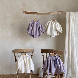 【BABY】フリル襟しわリボン長袖ロンパース