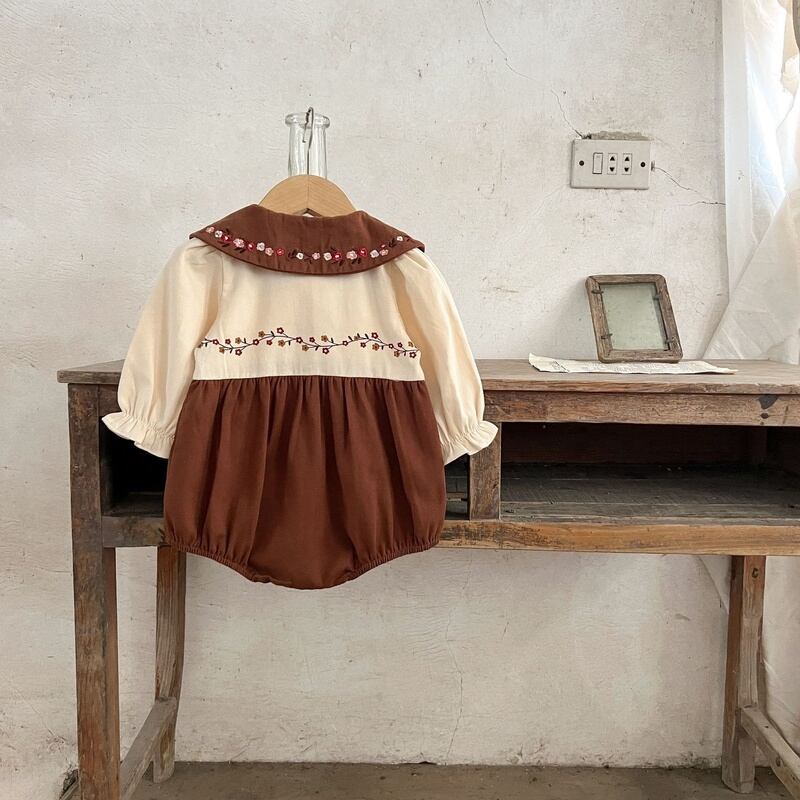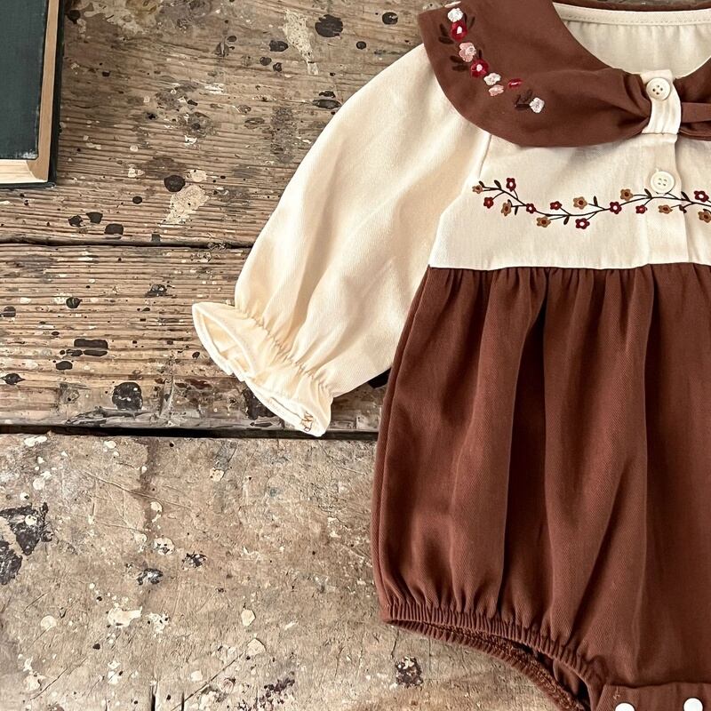 【BABY】韓国風 可愛い花柄長袖ロンパース
