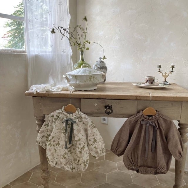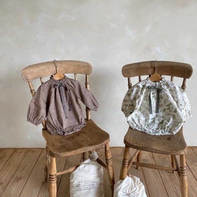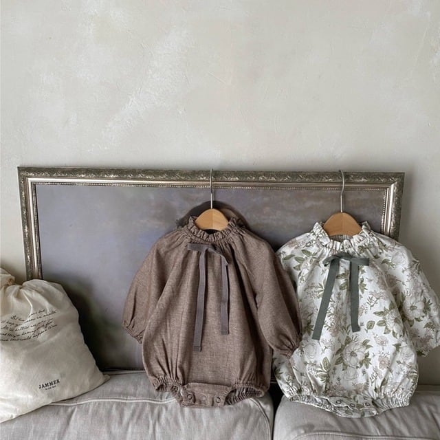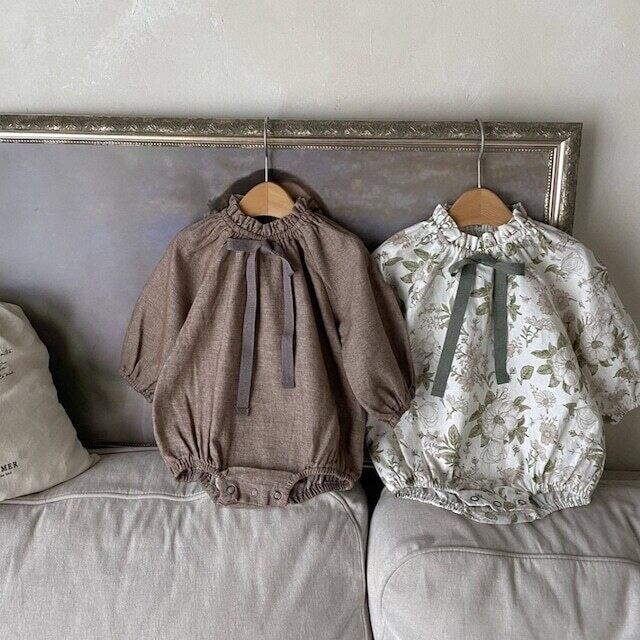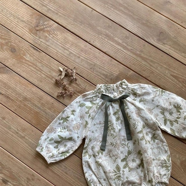 【BABY】韓国風 可愛い蝶結び花柄ロンパース
