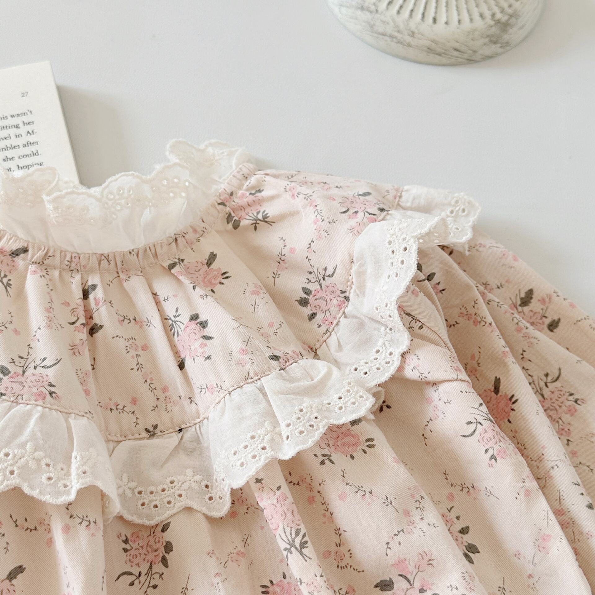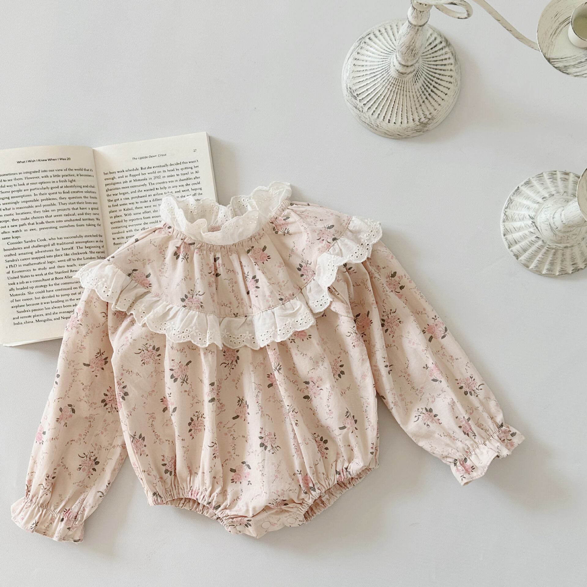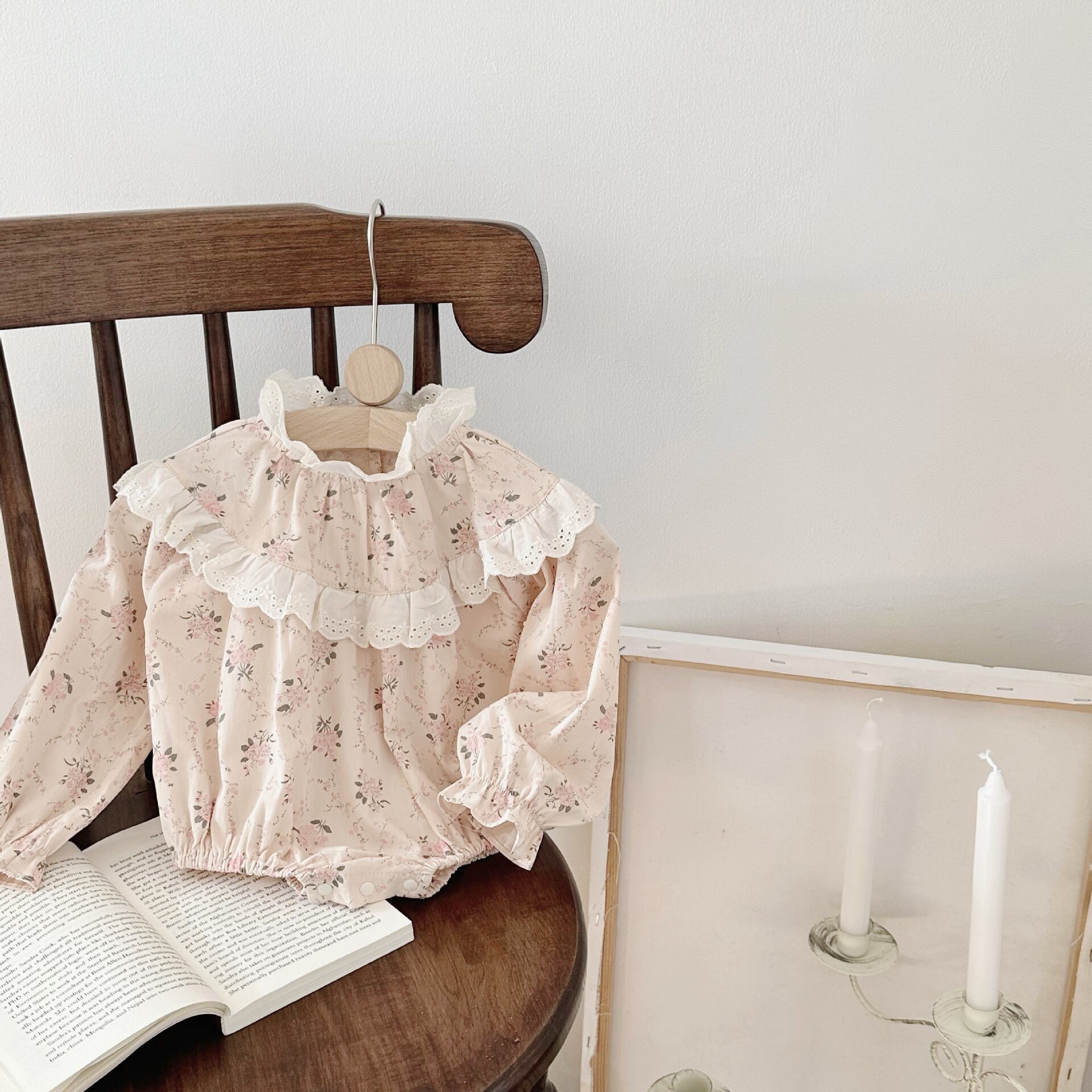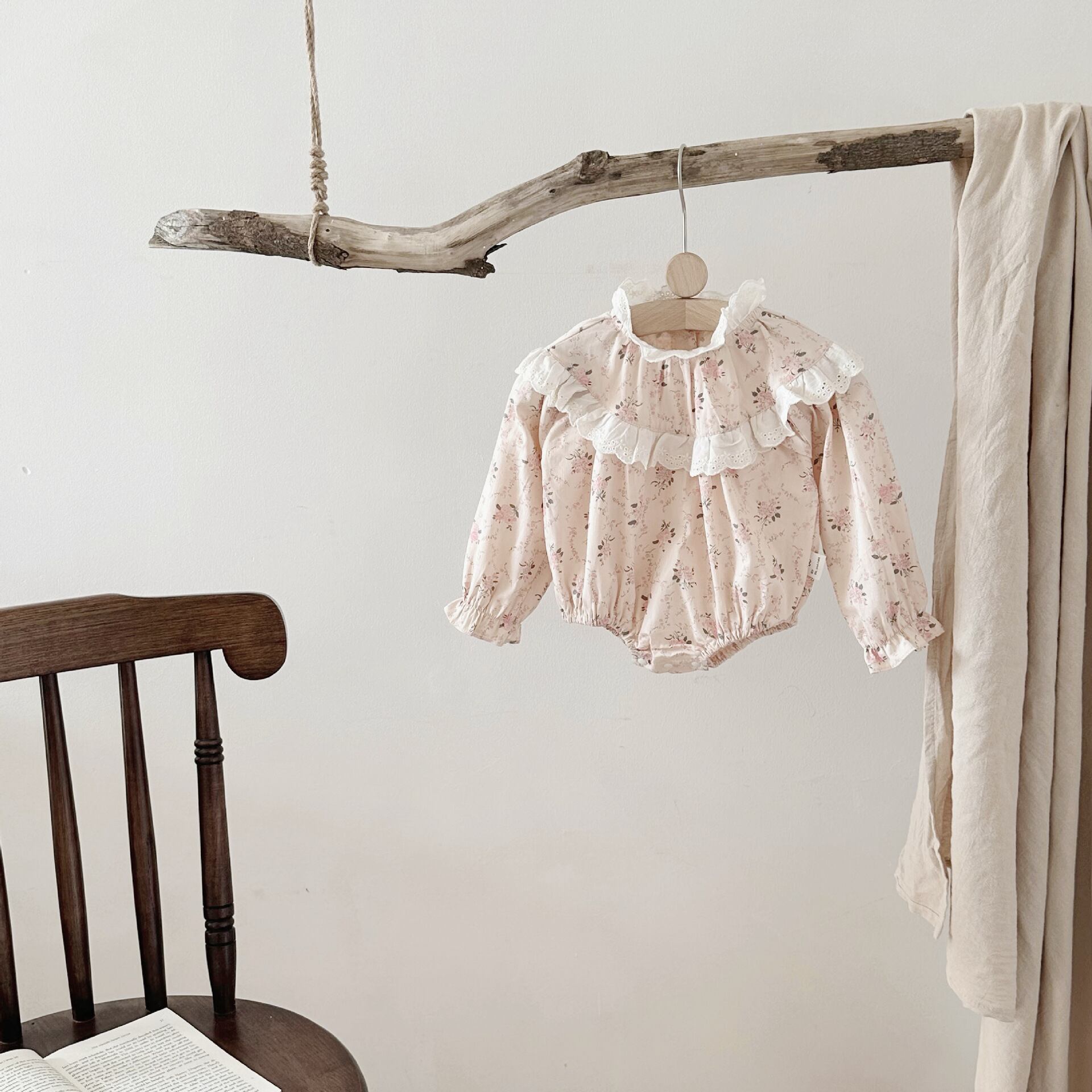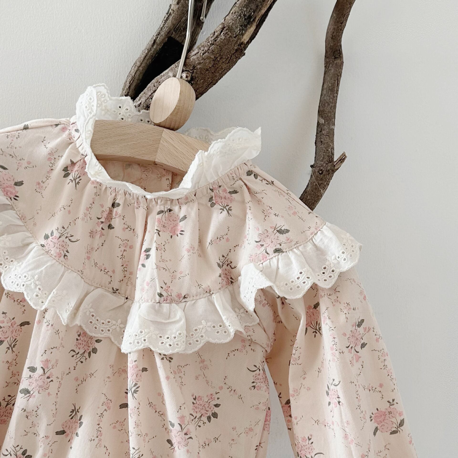 【BABY】韓国風 レース花柄長袖ロンパース