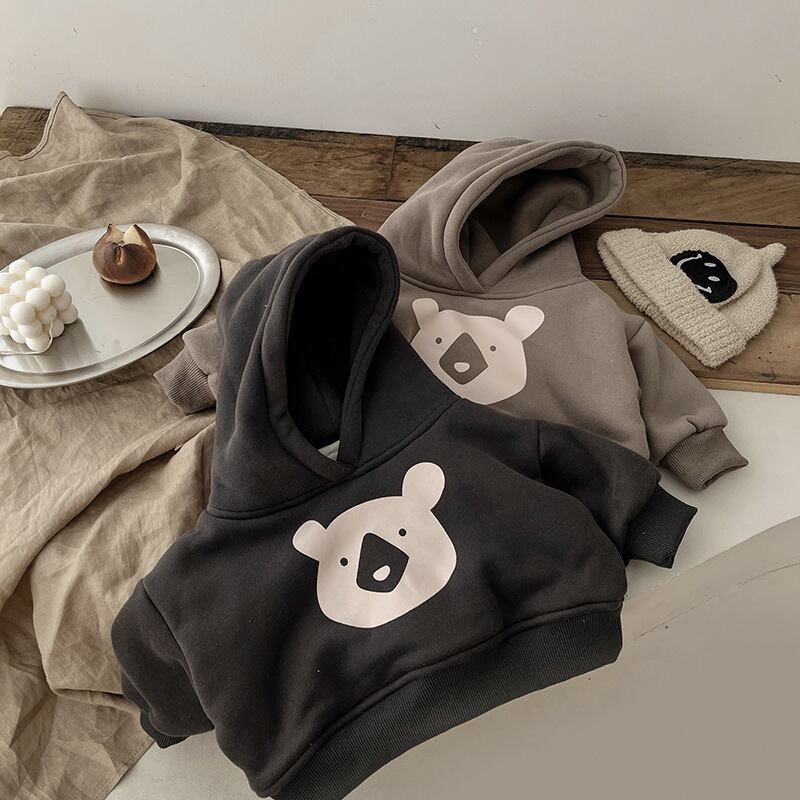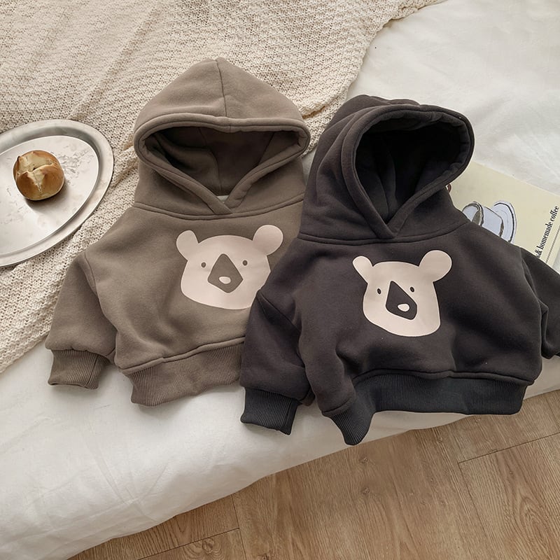 【BABY】クマ柄暖かい帽子付きトップス