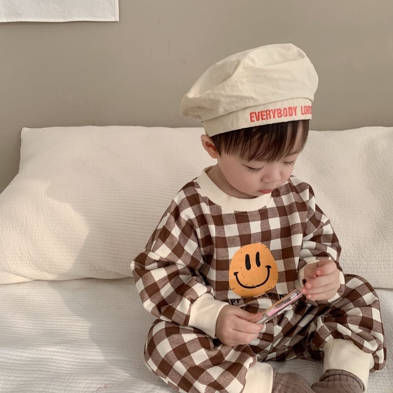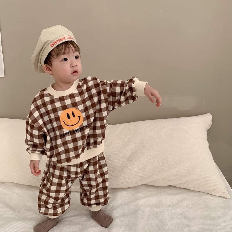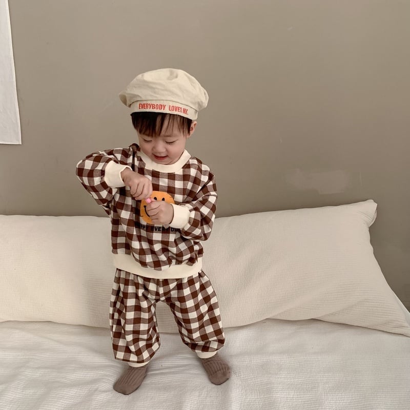 【BABY】韓国風 チェック柄笑顔セットアップ