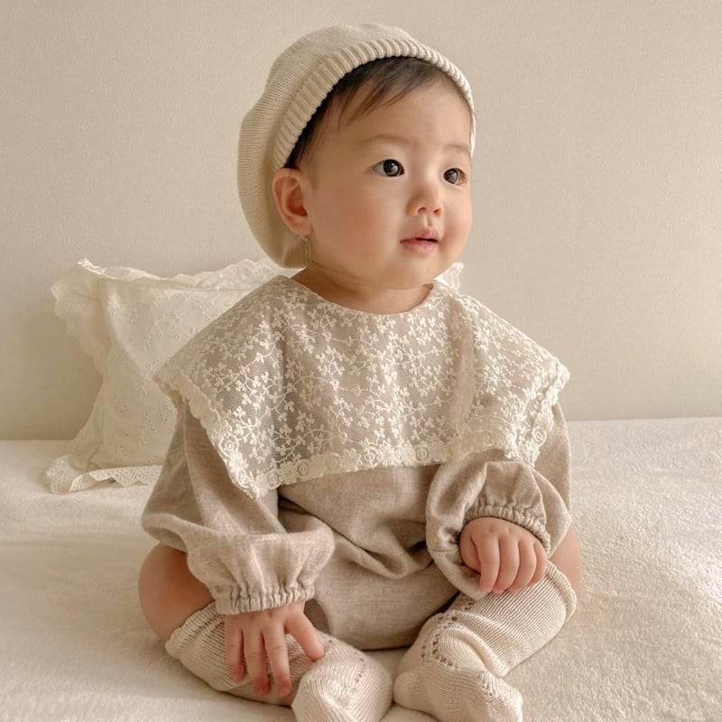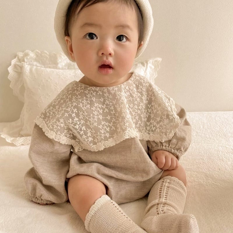 【BABY】韓国風 可愛いレース長袖ロンパース