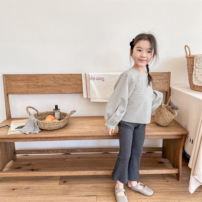 【BABY&KID】韓国風 バルーン袖チェック柄シャツ