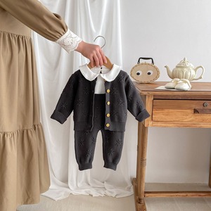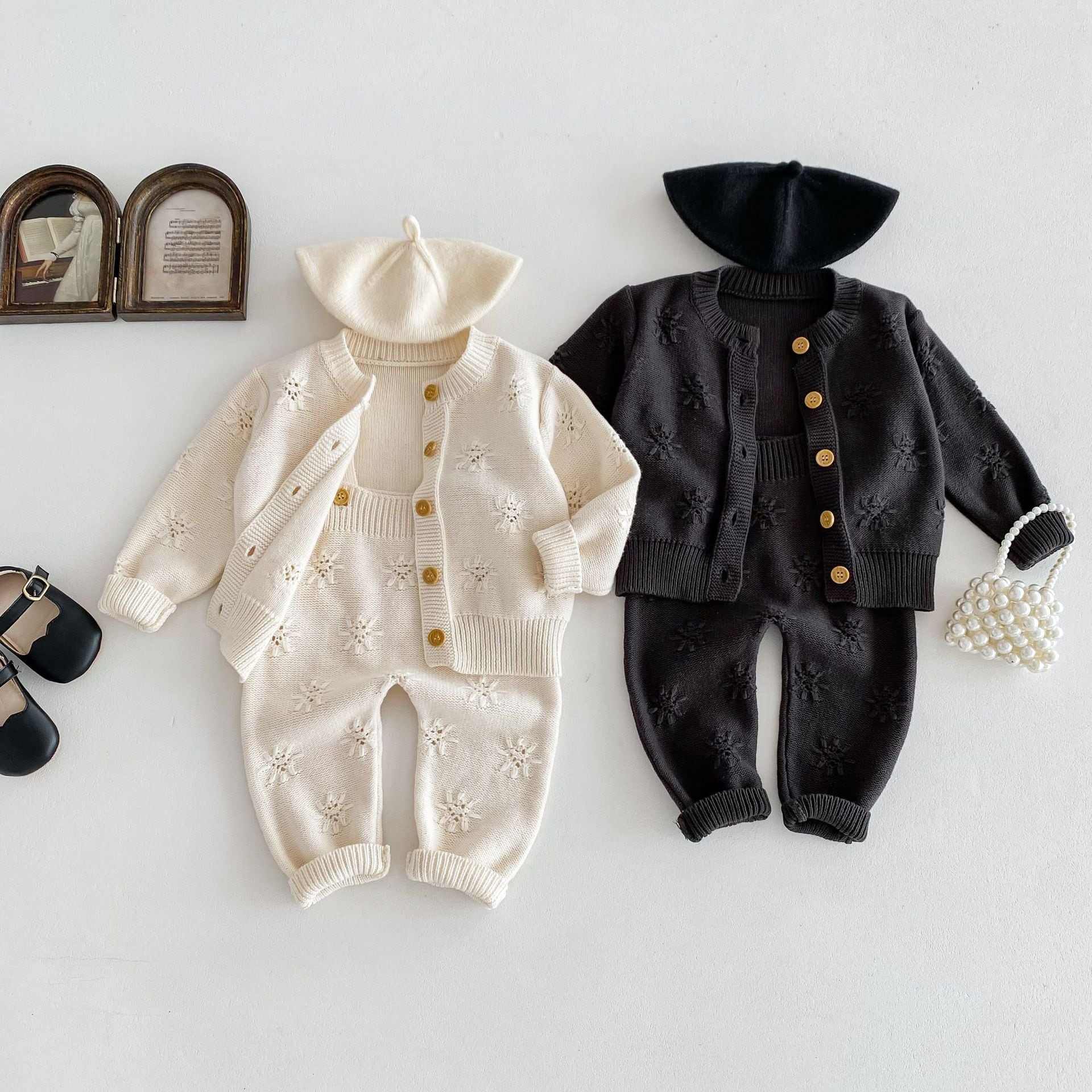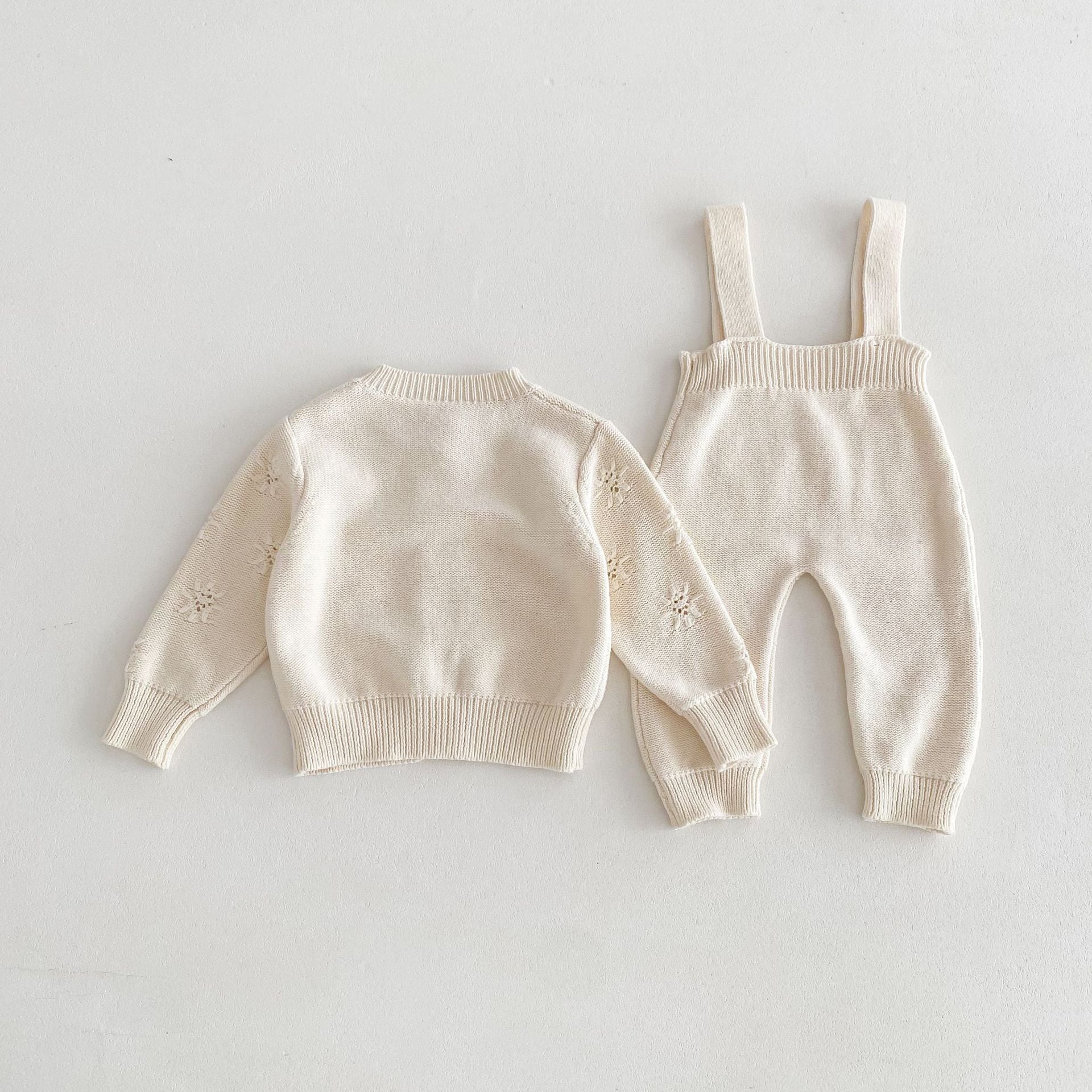 【BABY】2024新作 ナチュラル花刺繡ニットサロペット、カーディガン