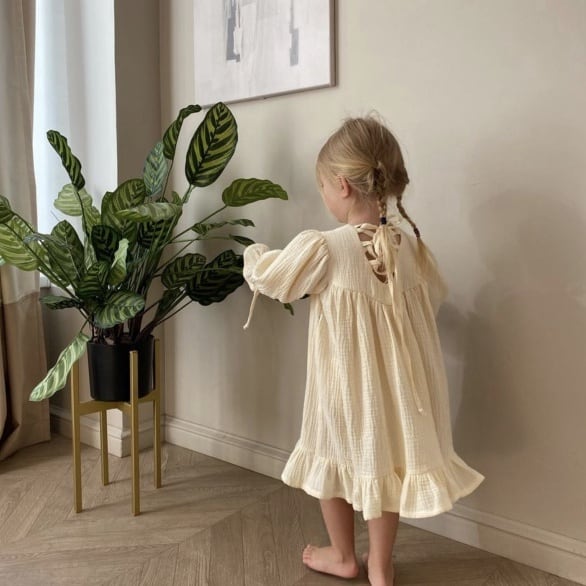 【BABY&KID】プリンセス風フレア無地ワンピース