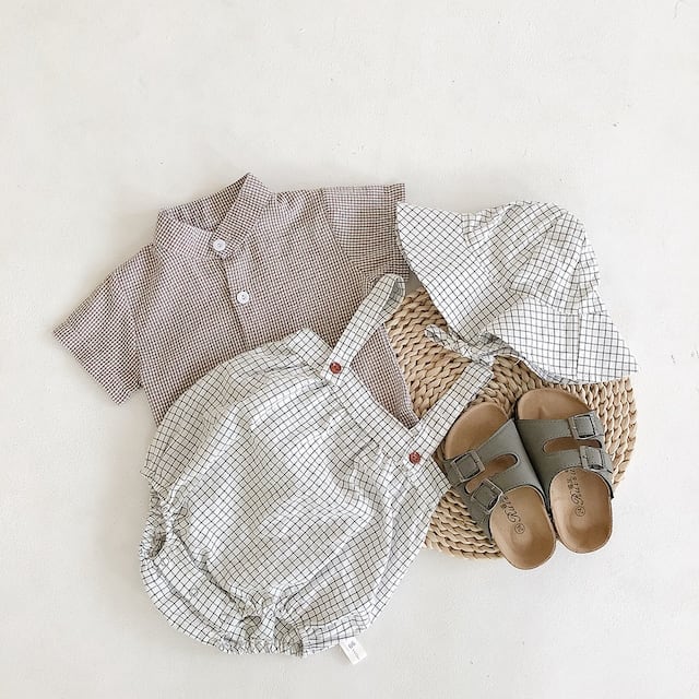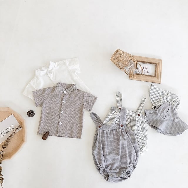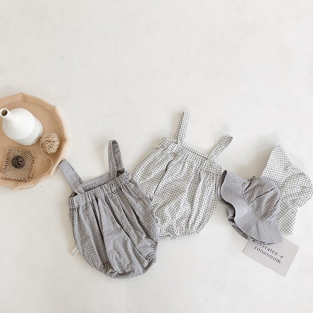 【BABY】夏新作 チェックサロペット&帽子