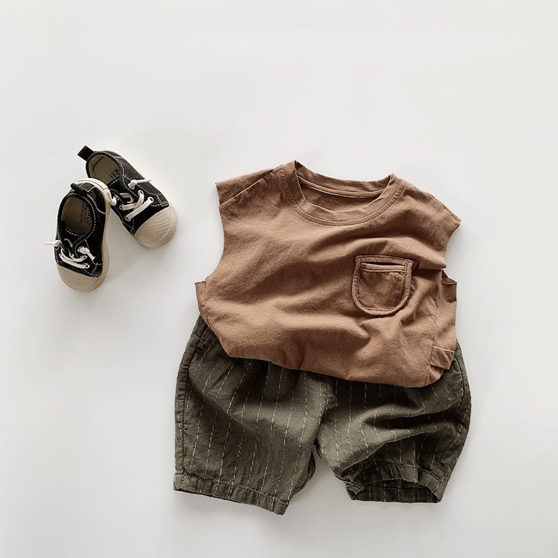 【BABY&KID】夏新作 ノースリーブ無地Tシャツ
