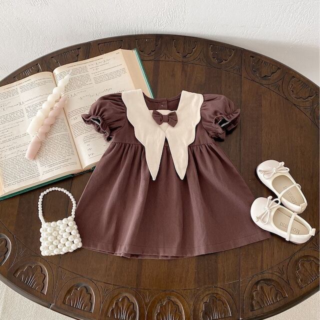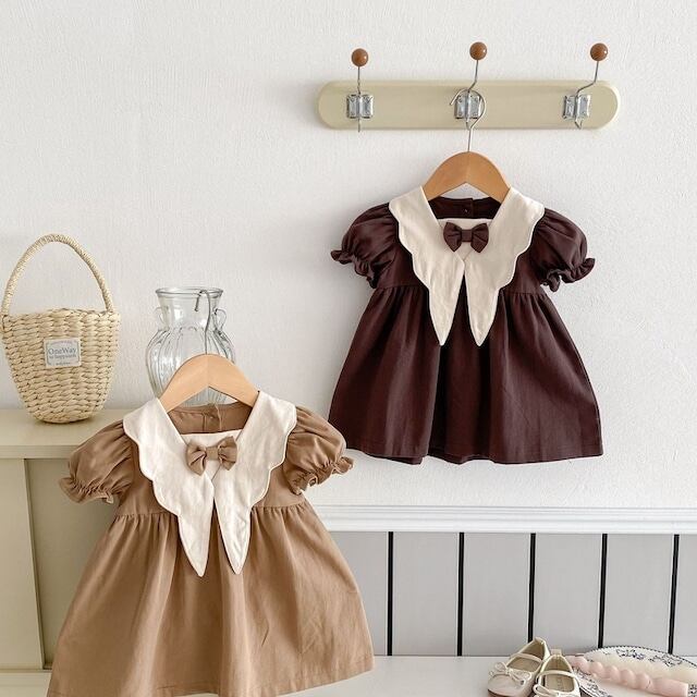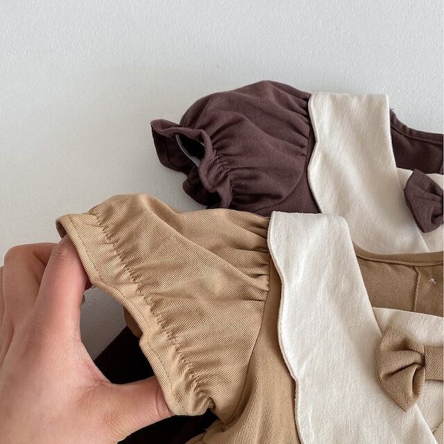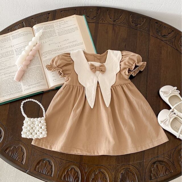 【BABY&KID】韓国風可愛い蝶ネクタイワンピース