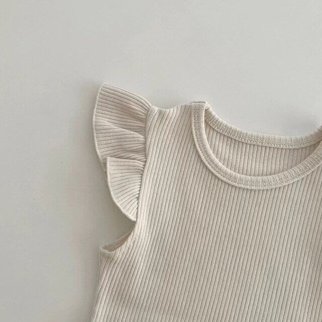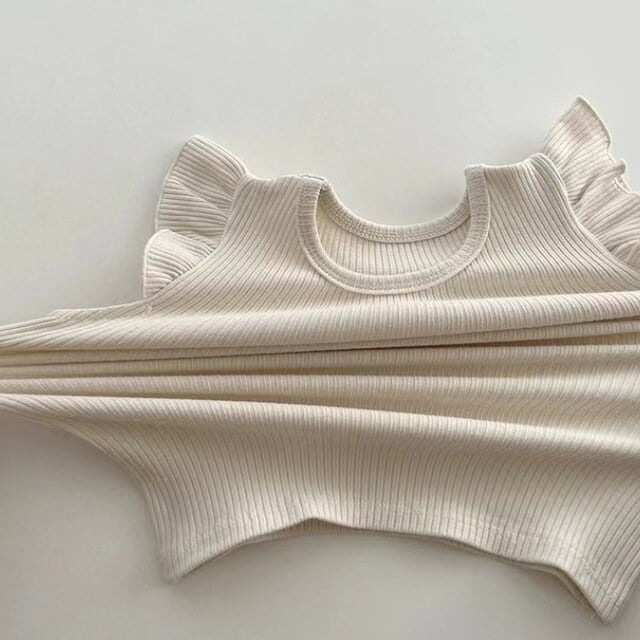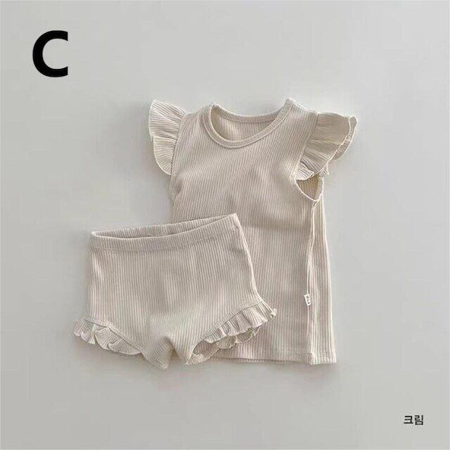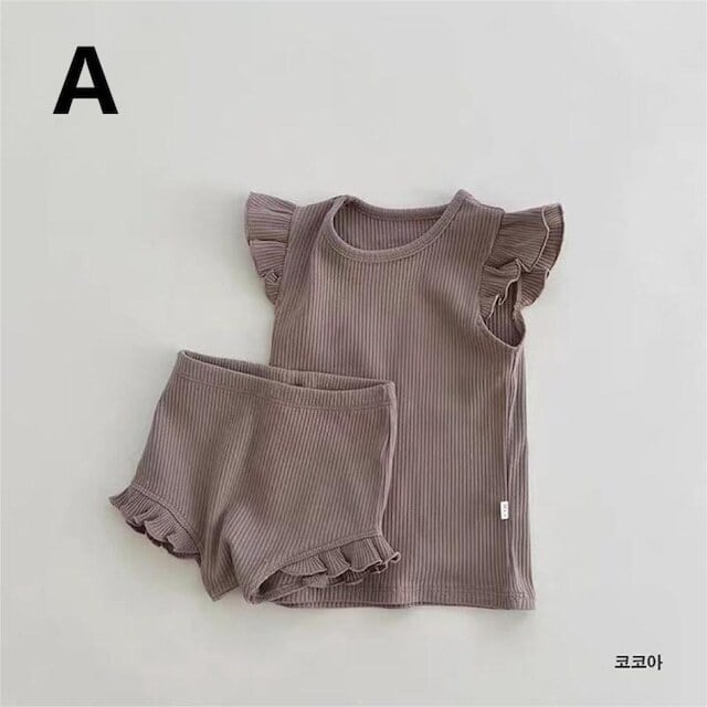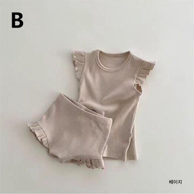 【BABY】韓国風 フリルナチュラルリブセットアップ