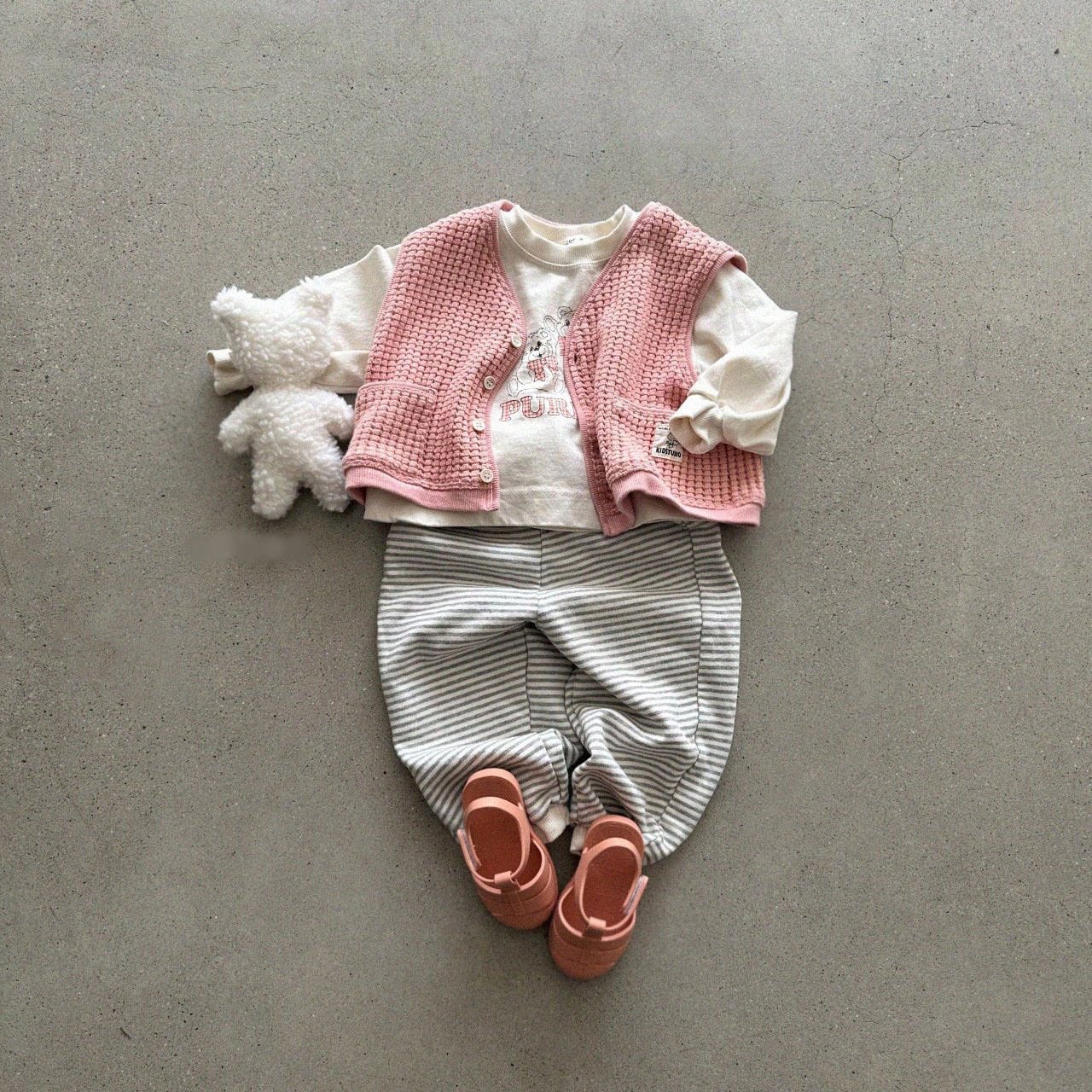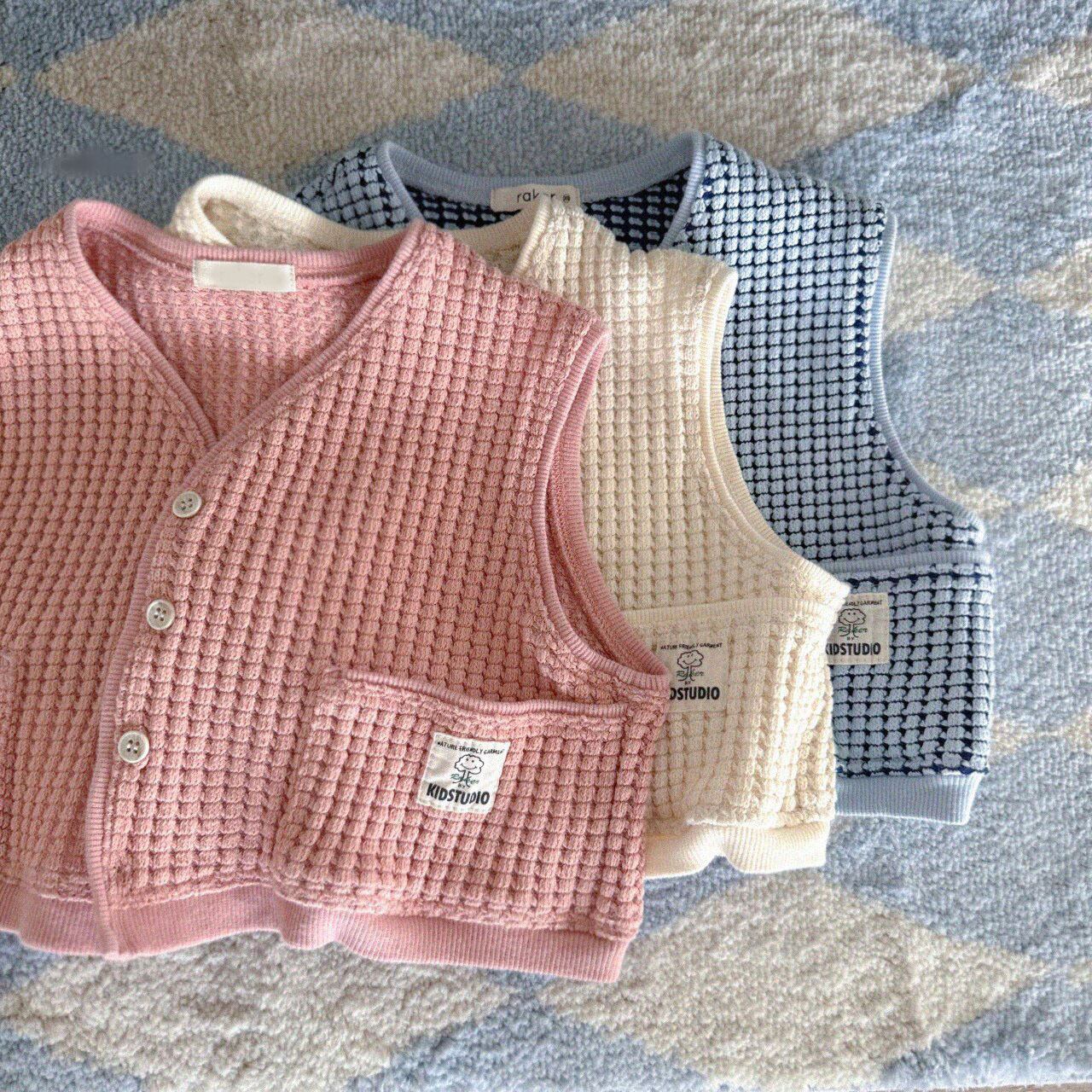 【BABY】春新作 ワッフル無地ベスト