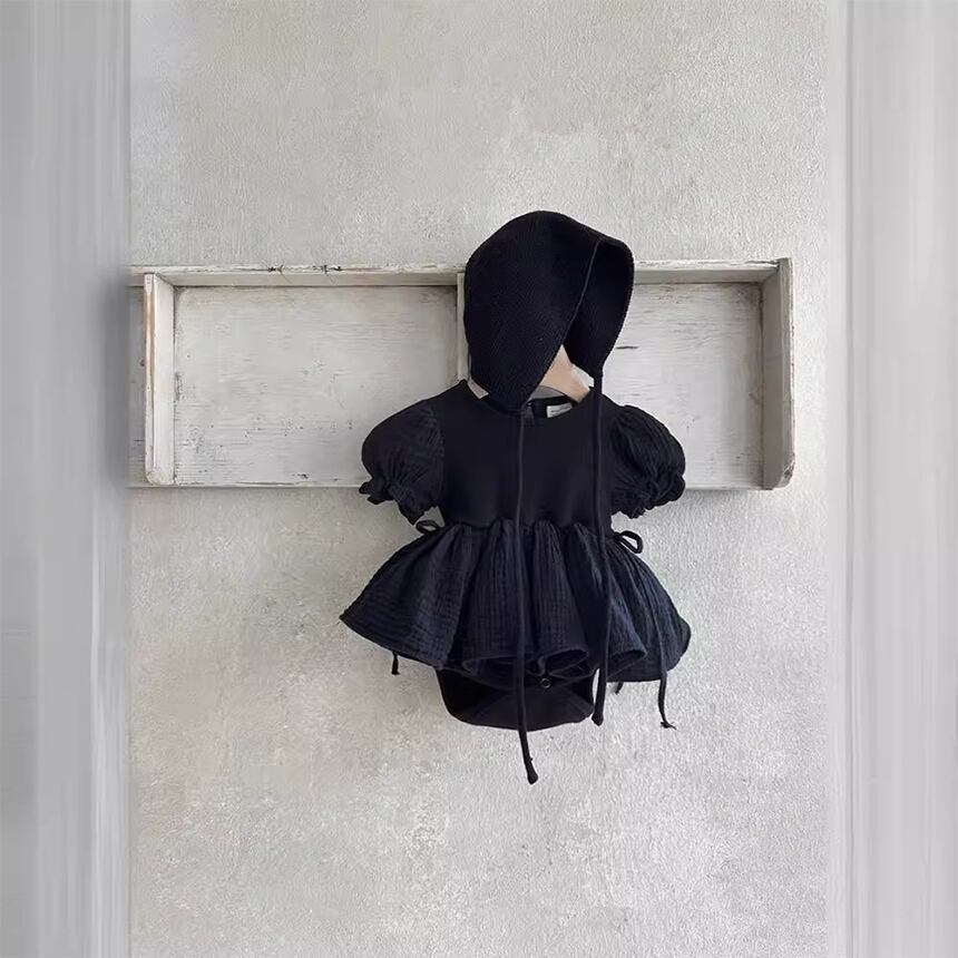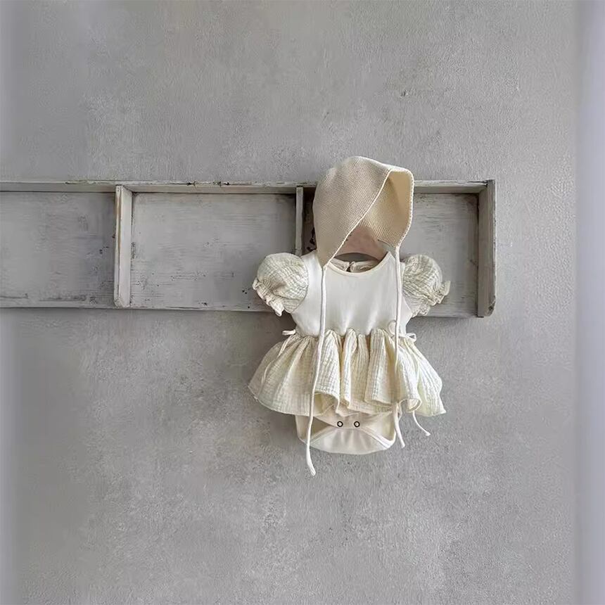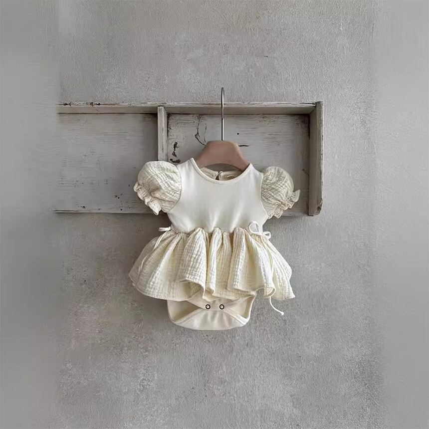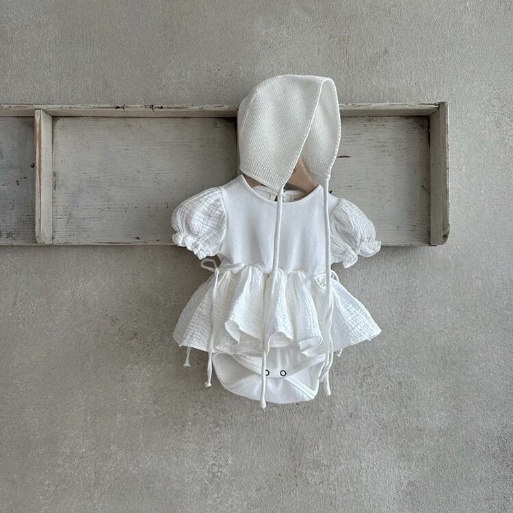 【BABY】韓国風 パフスリーブ半袖ロンパース
