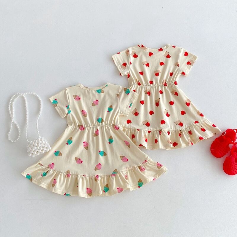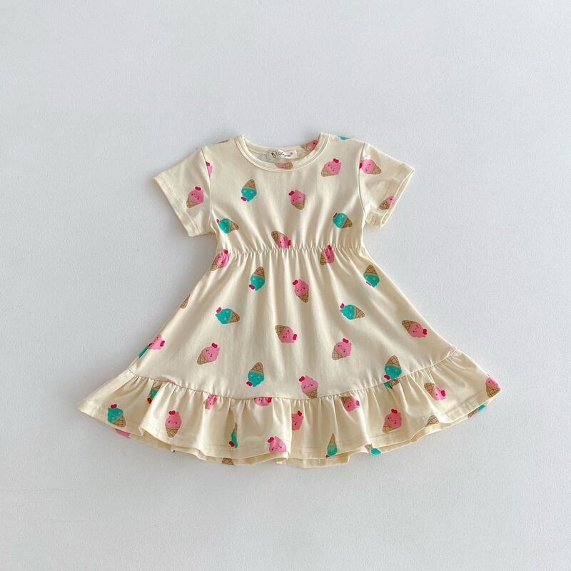 【BABY&KID】夏服 可愛いクマ柄アイスクリームワンピース