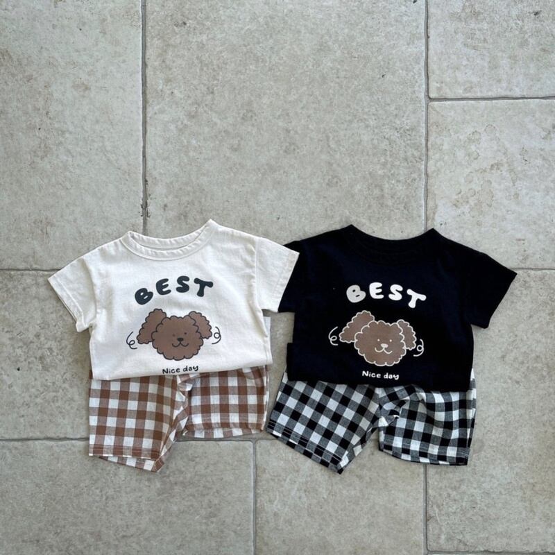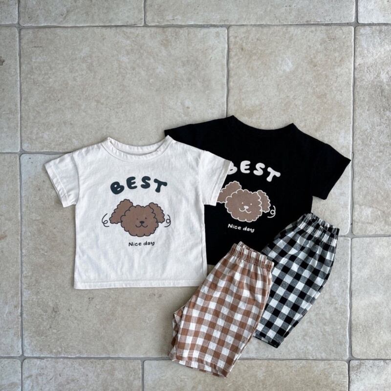 【BABY】夏新作 ドッグTシャツ&チェックパンツ