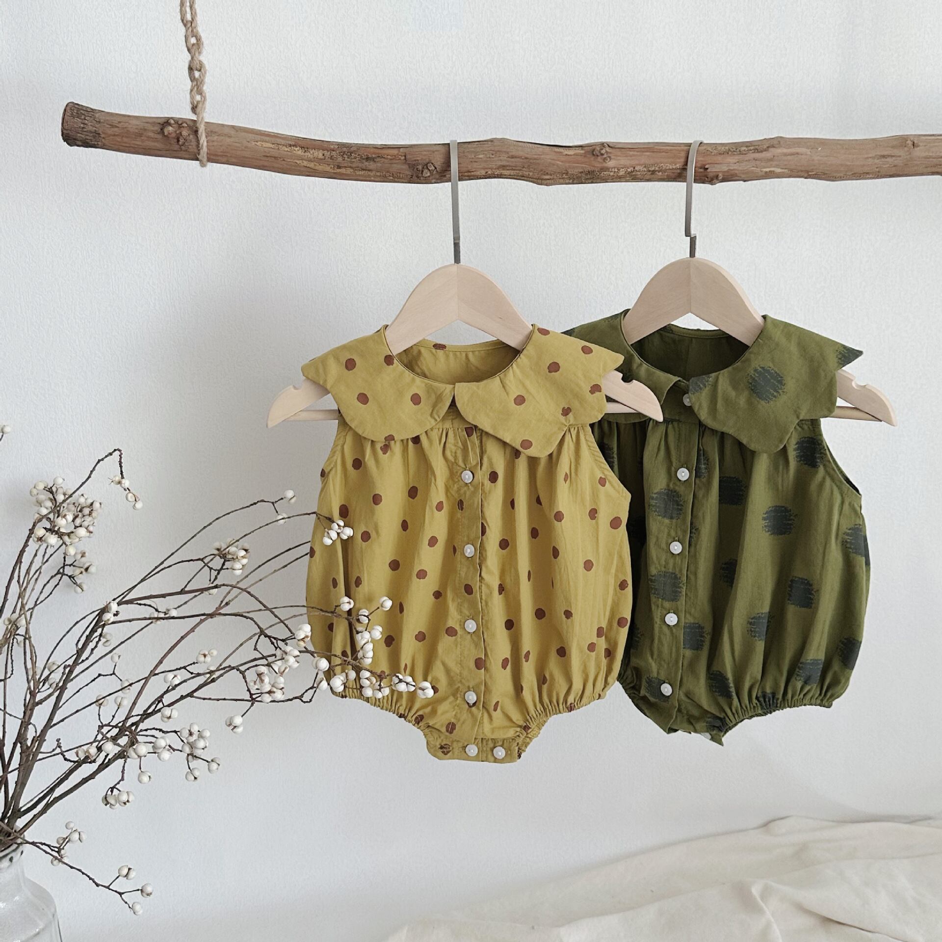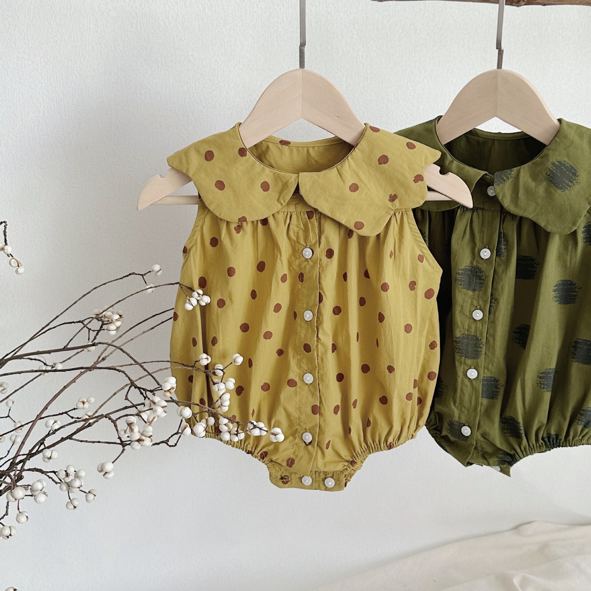 【BABY】夏新作 ノースリーブドット柄ロンパース