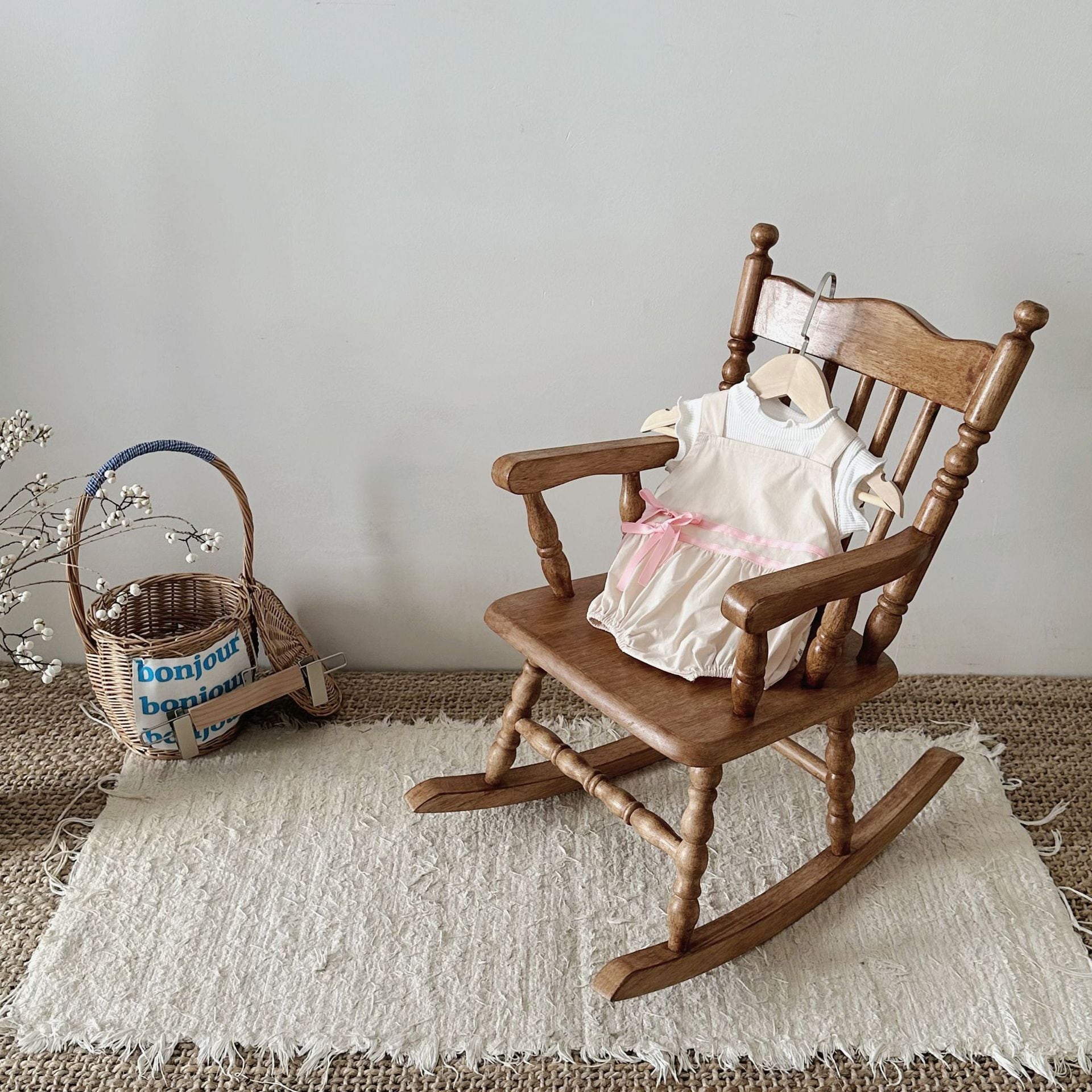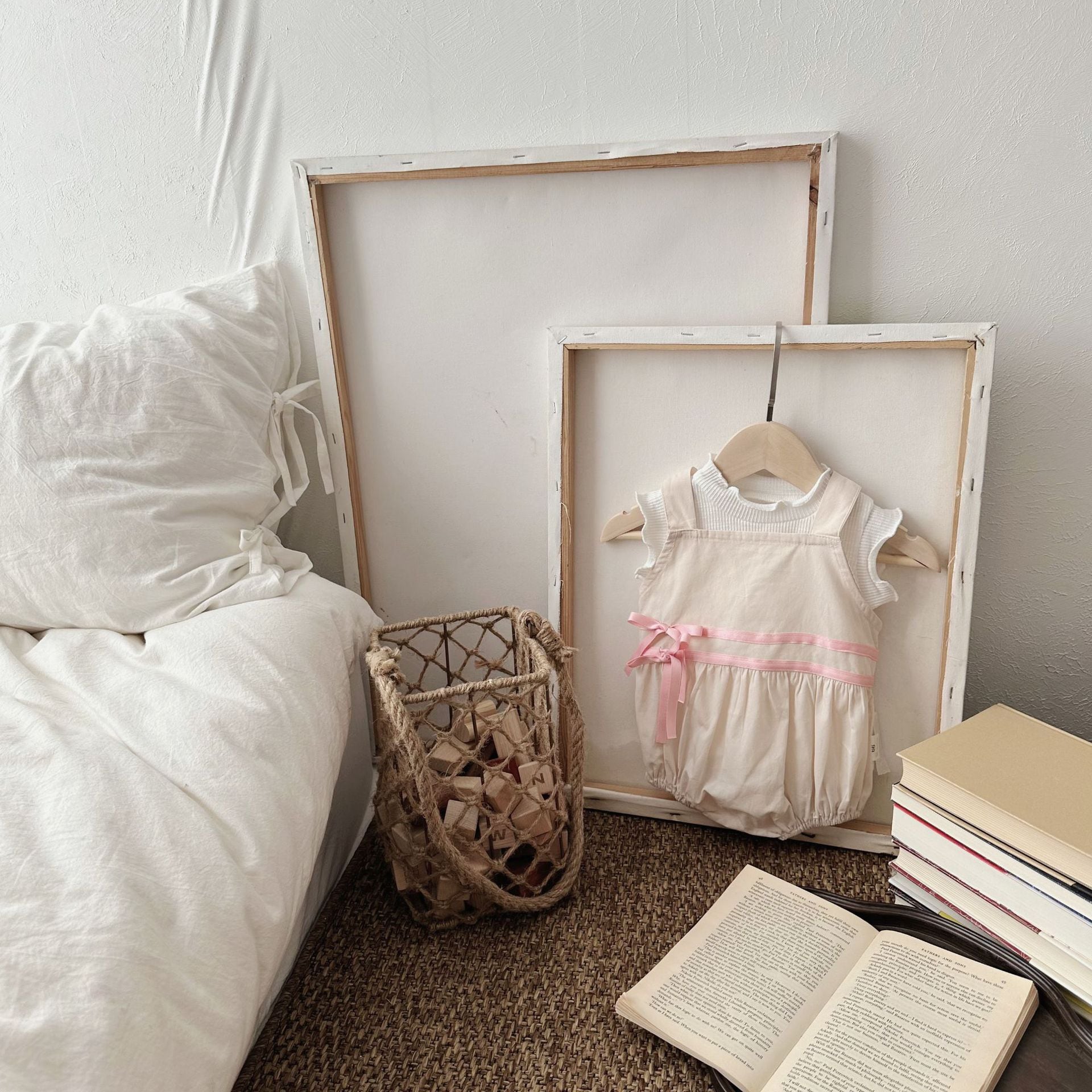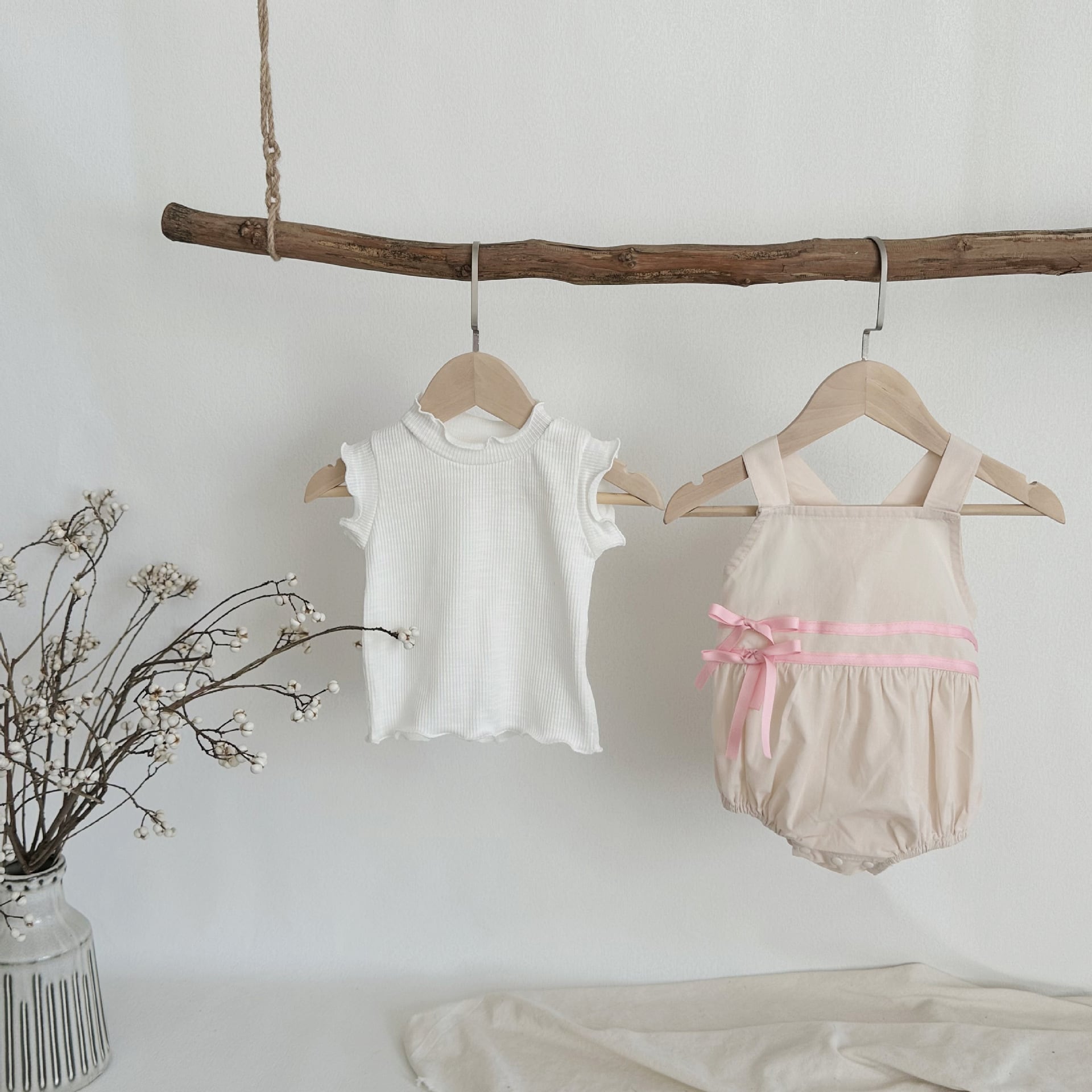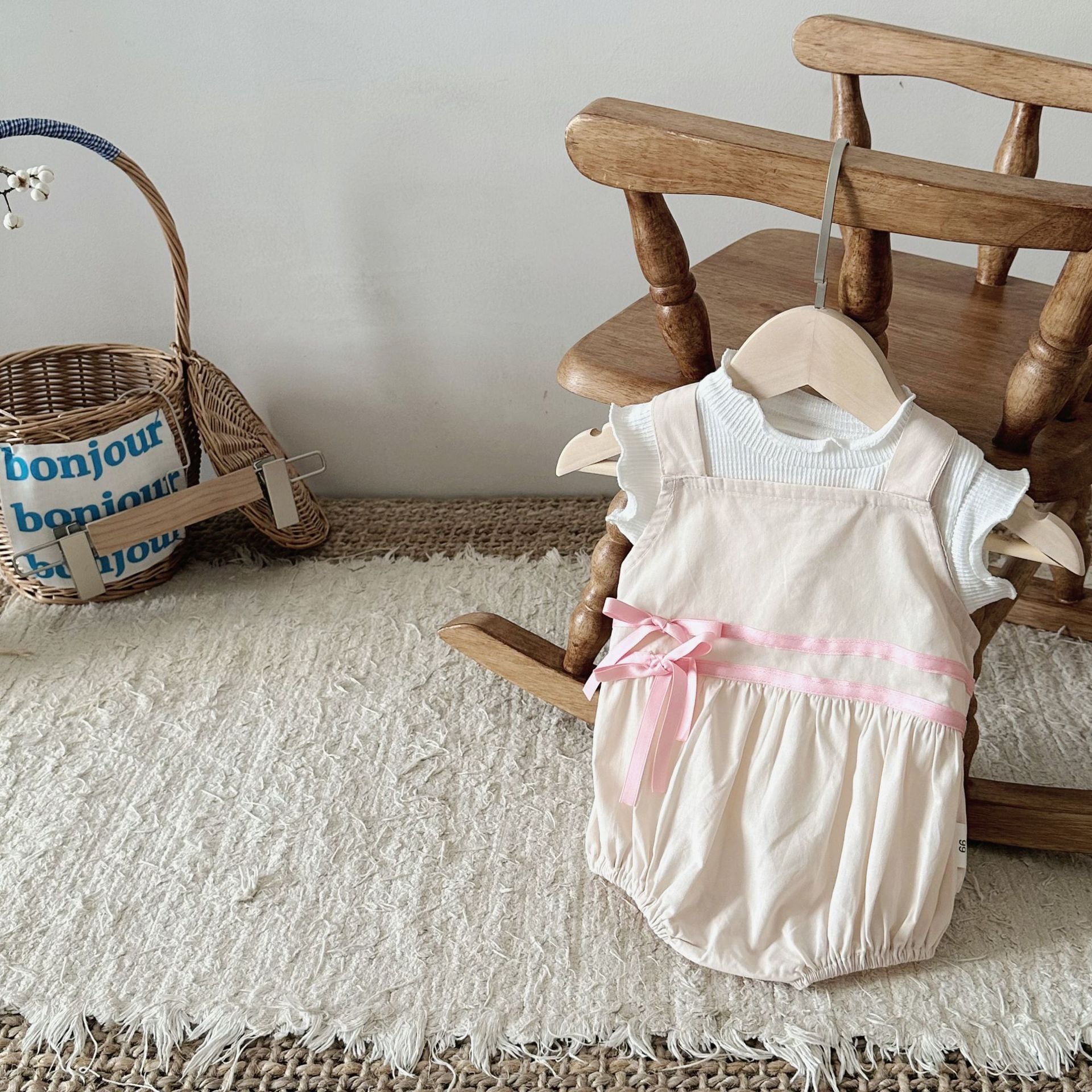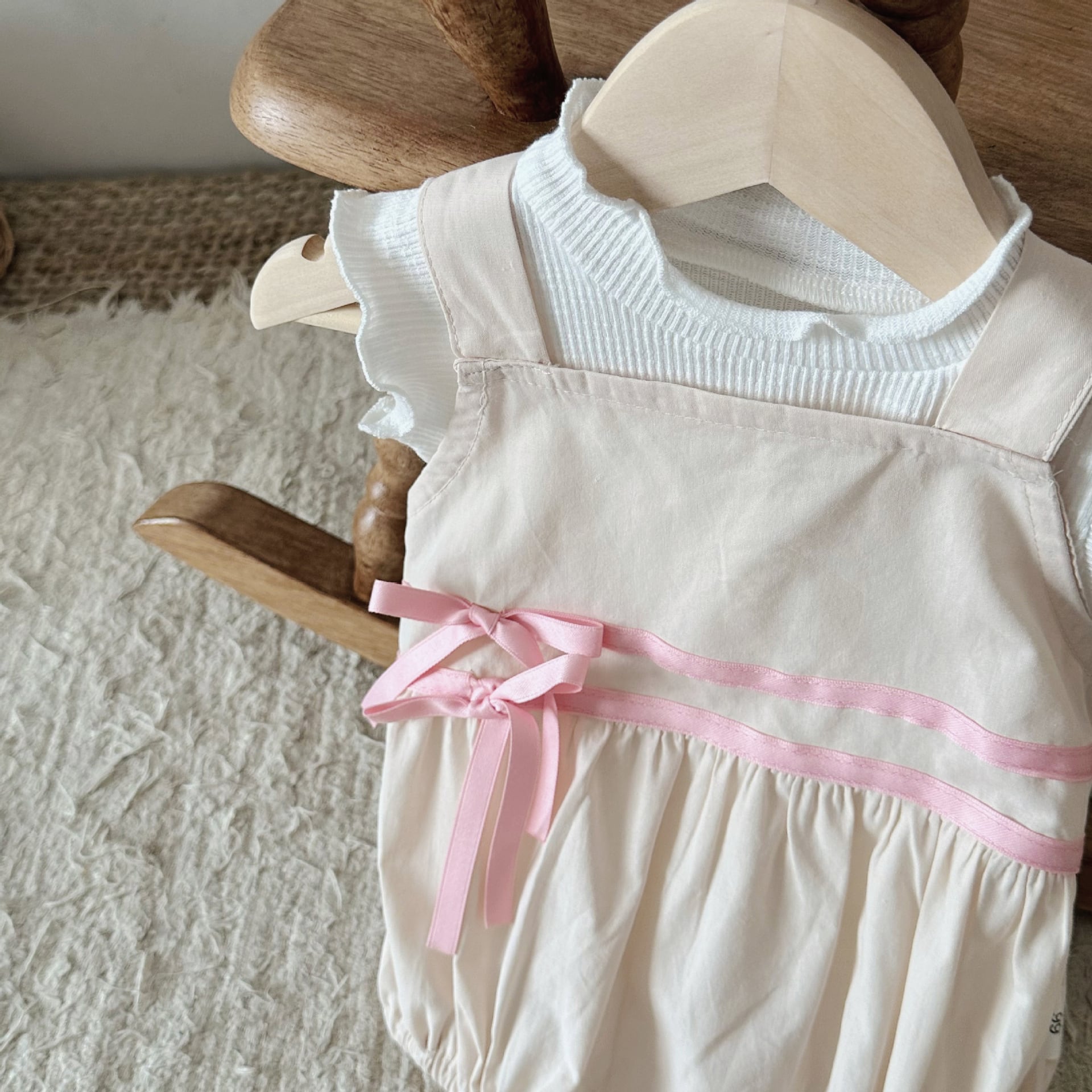 【BABY】韓国風 リボン無地サロペット
