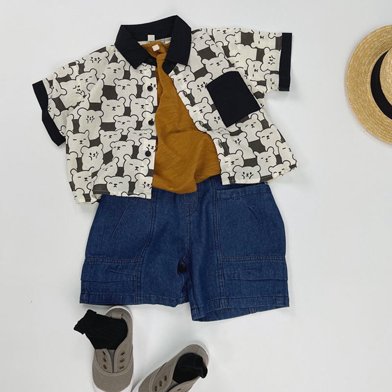 【BABY&KID】2024夏新作 可愛いベア柄シャツ