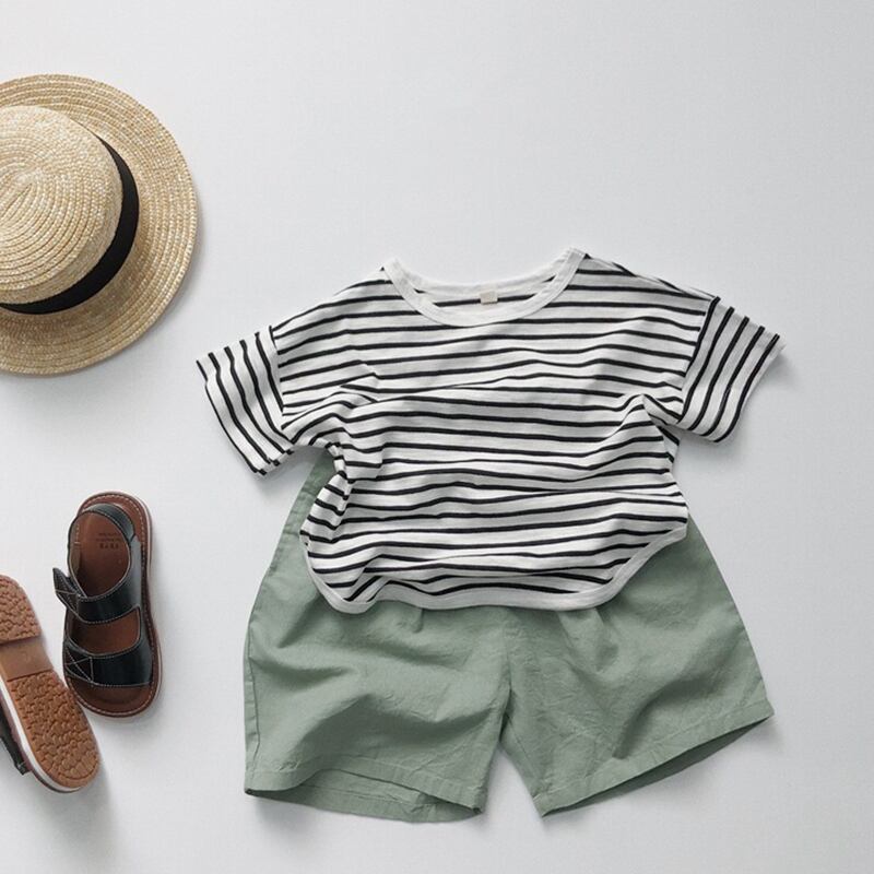 【BABY&KID】2024夏新作 ボーダー柄半袖Tシャツ