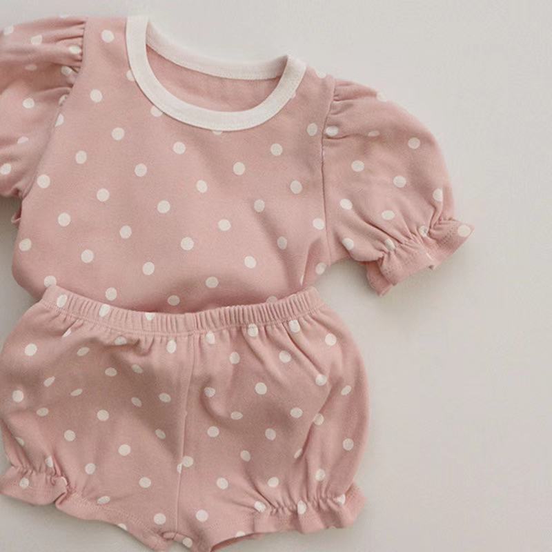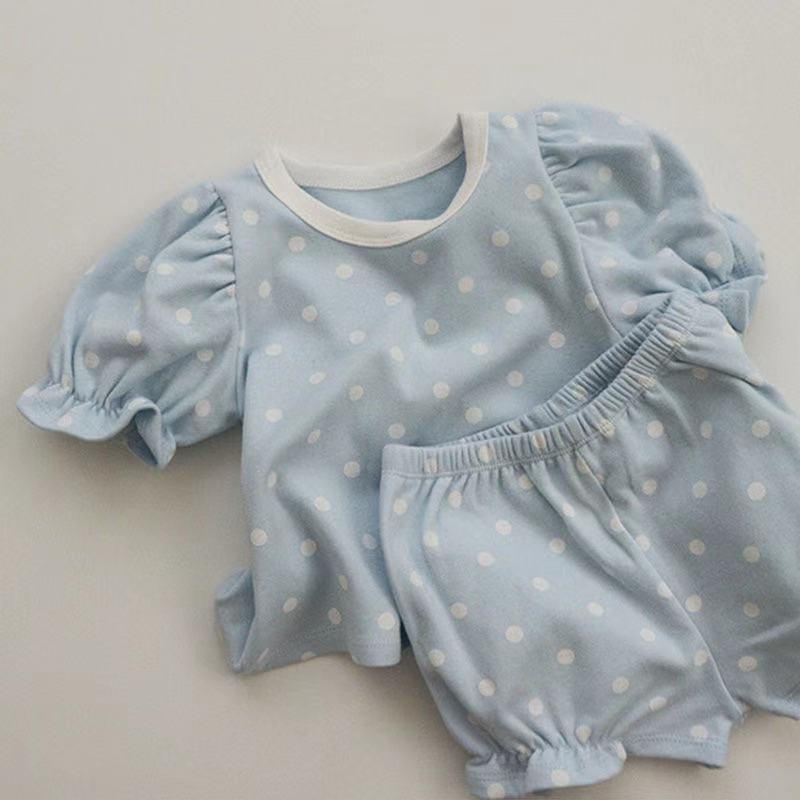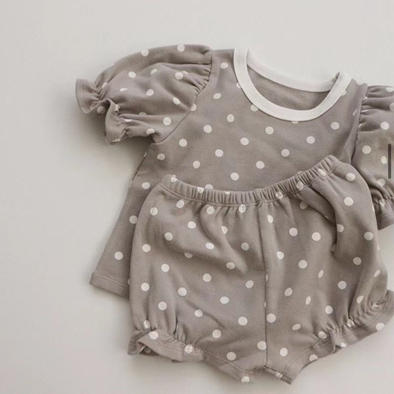 【BABY】夏新作 ドットフレア半袖セットアップ