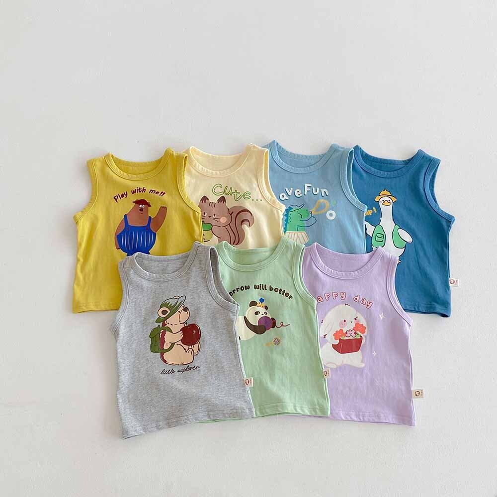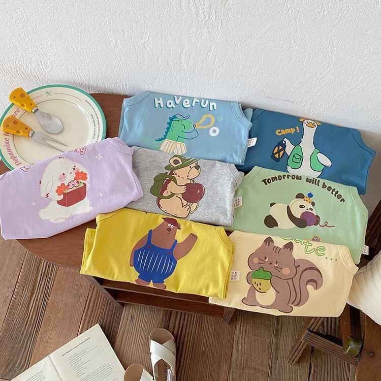 【BABY&KID】2024夏新作 韓国風動物柄ノースリーブシャツ
