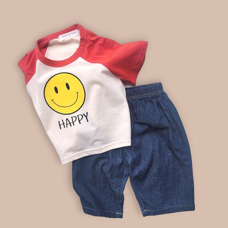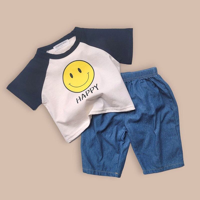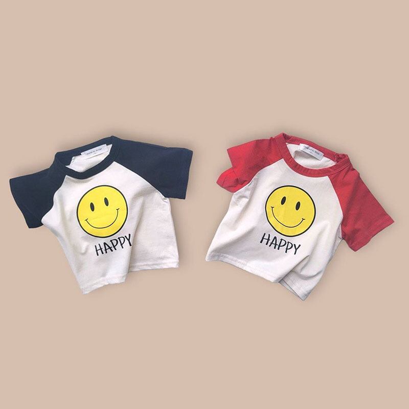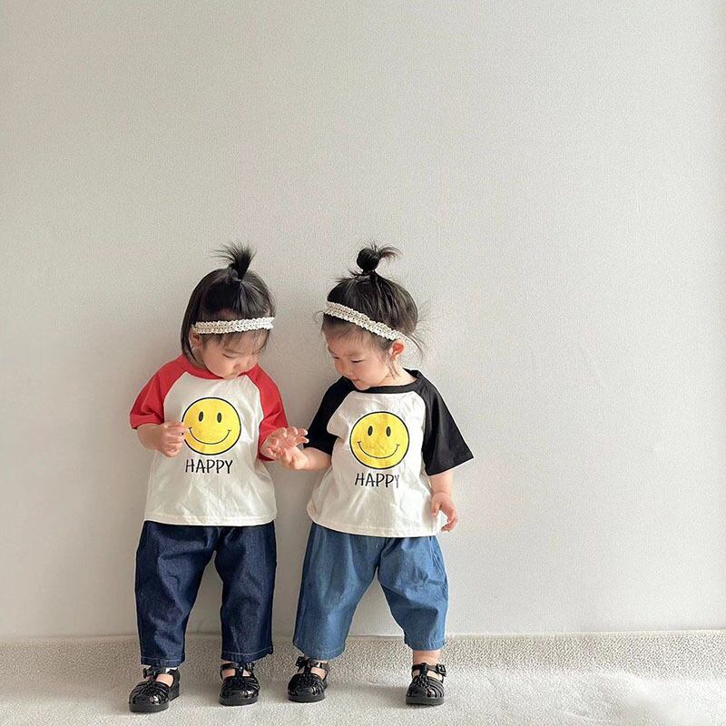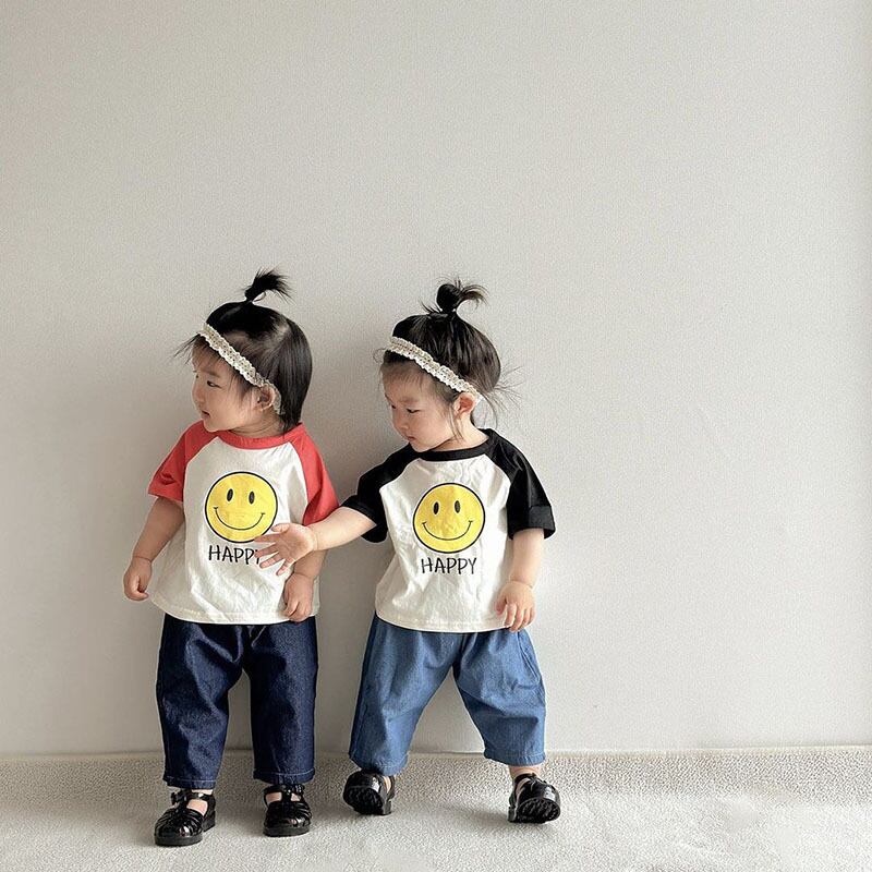 【BABY】韓国風 笑顔カラーバリ半袖tシャツ