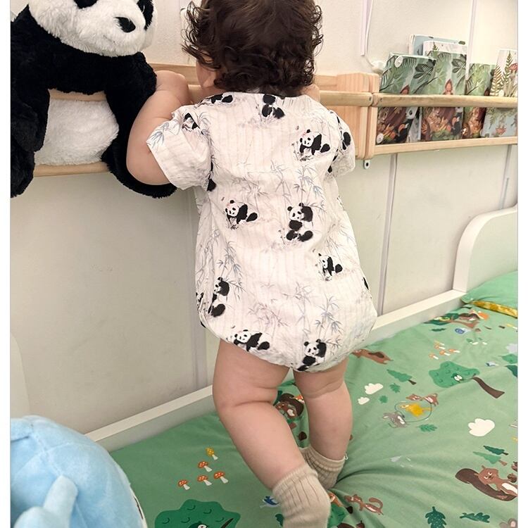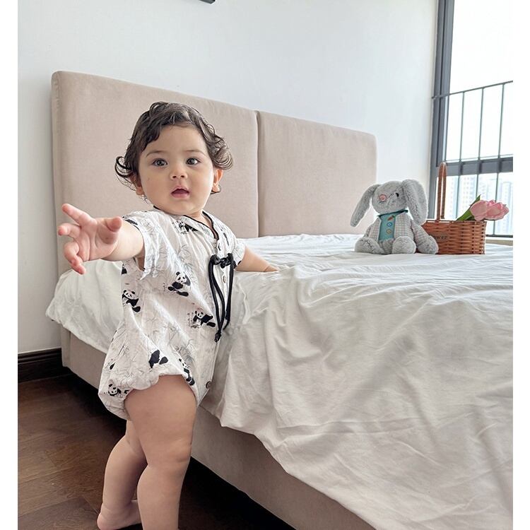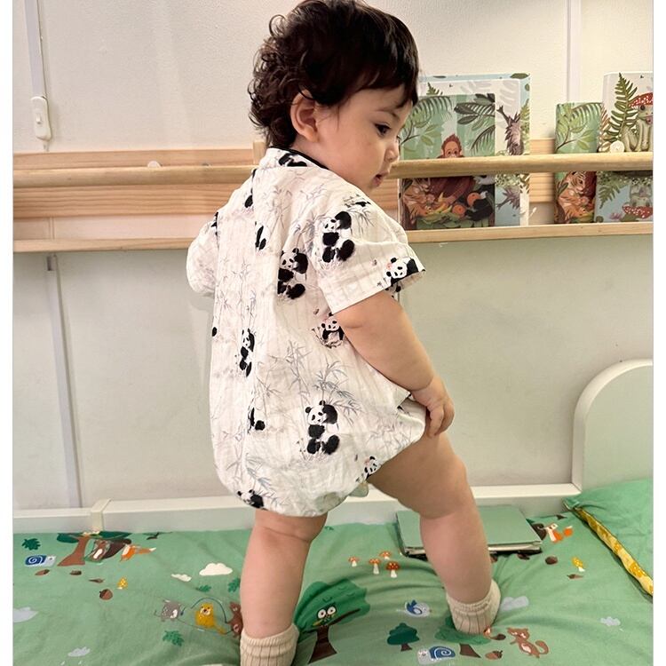 【BABY】夏新作 可愛いパンダ柄ロンパース、オールインワン